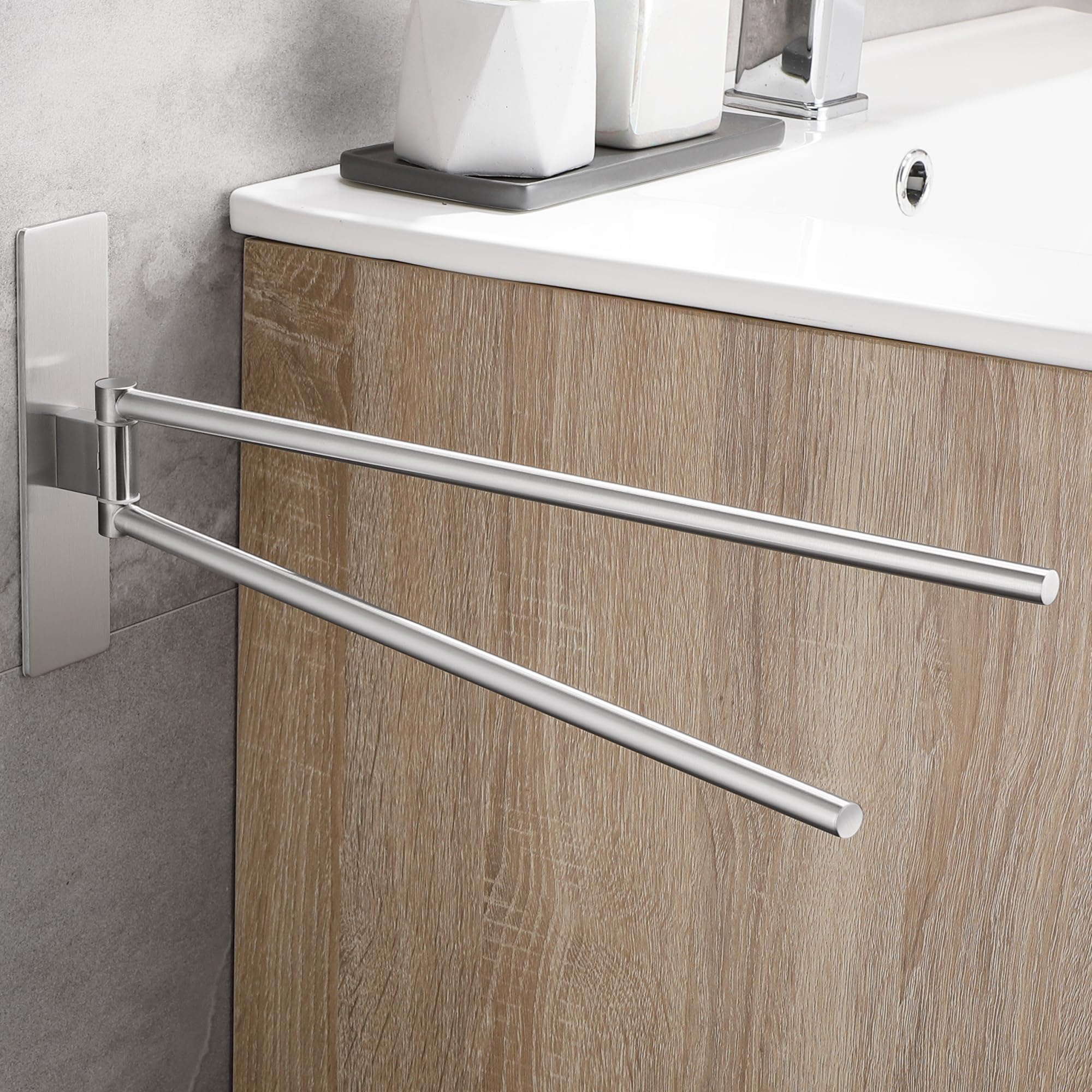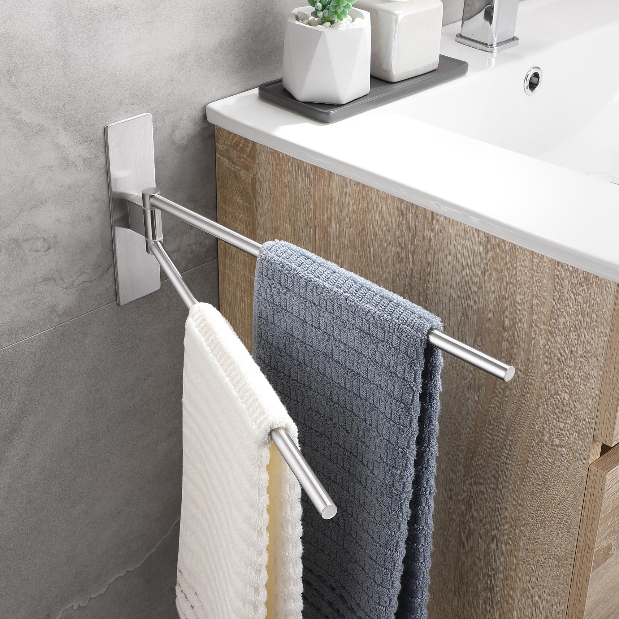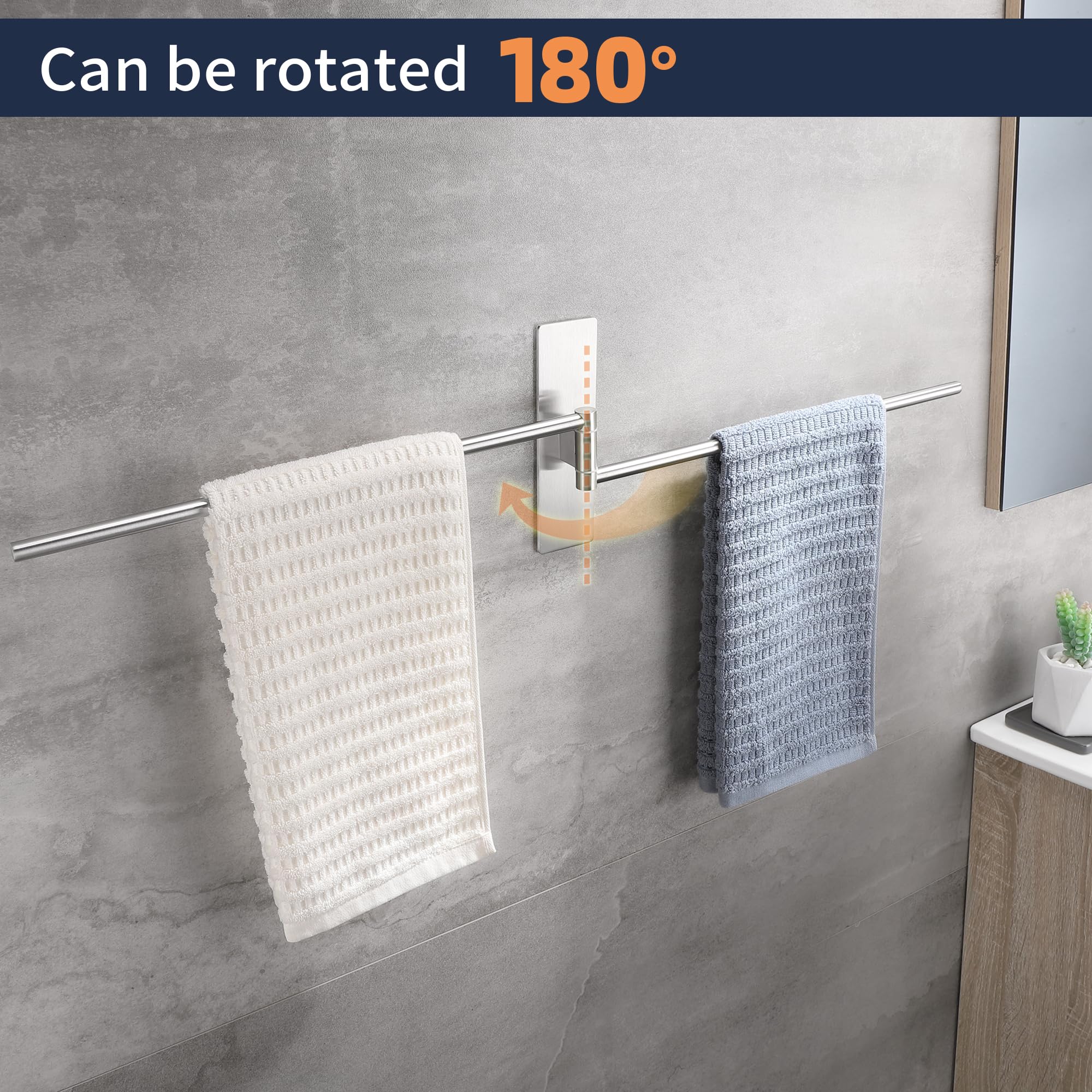 OETAMS Handtuchhalter Ohne Bohren 180° Schwenkbar Handtuchstange Selbstklebend Handtuchhalter 304 Edelstahl Badetuchhalter Doppelter Habdtuchhalterung Gebürstet Silber