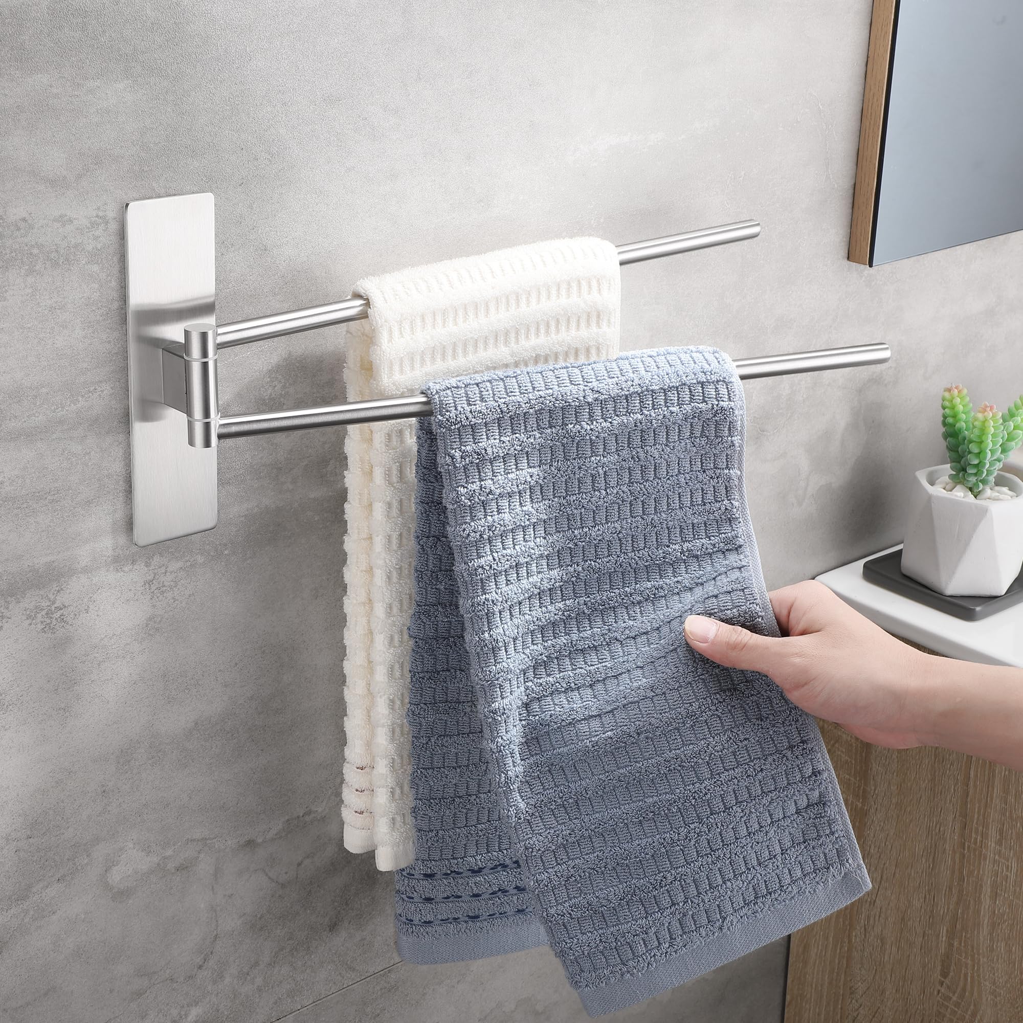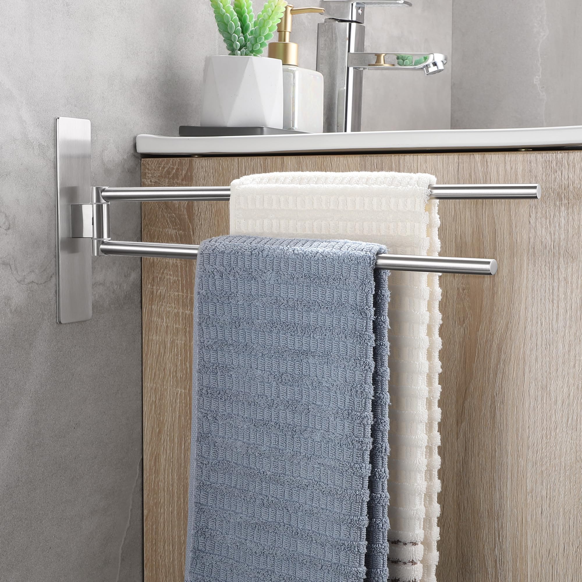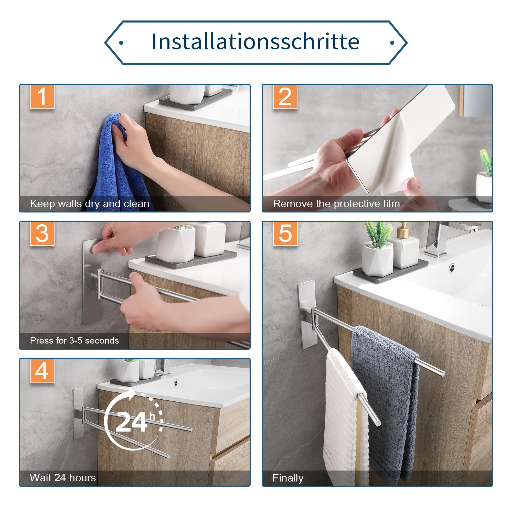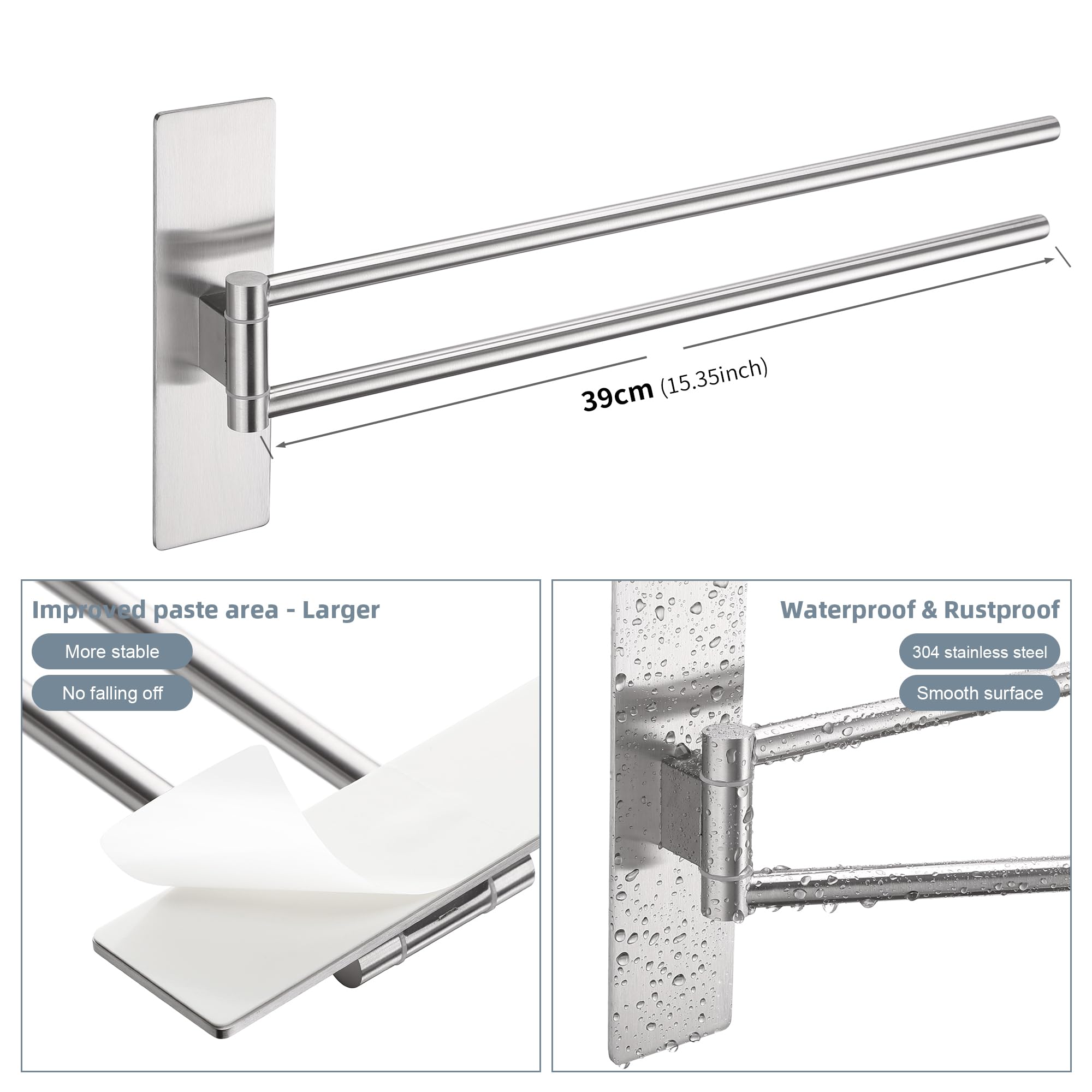 OETAMS Handtuchhalter Ohne Bohren 180° Schwenkbar Handtuchstange Selbstklebend Handtuchhalter 304 Edelstahl Badetuchhalter Doppelter Habdtuchhalterung Gebürstet Silber