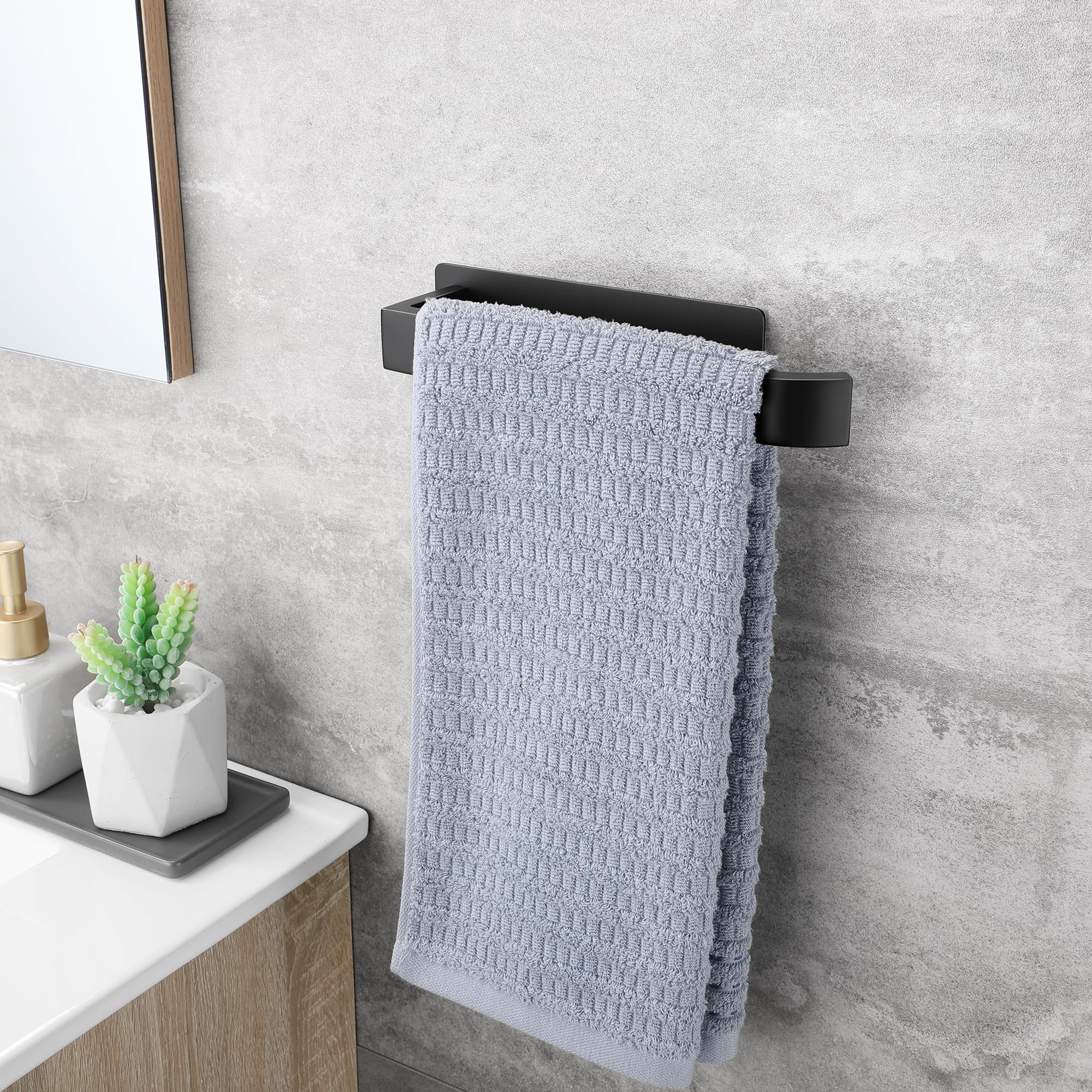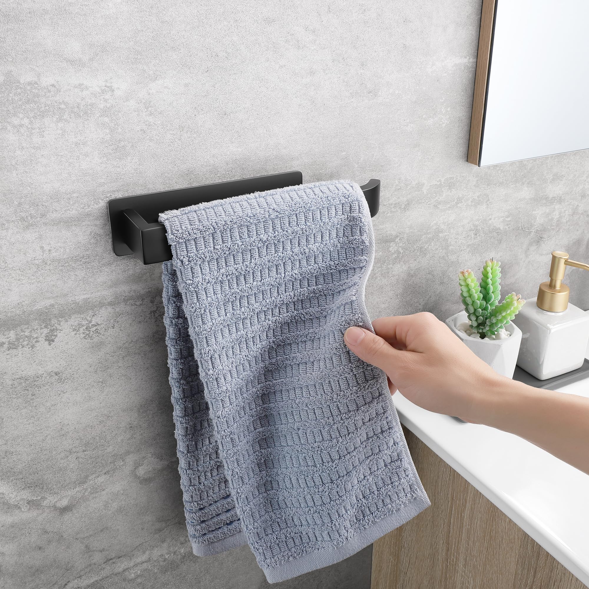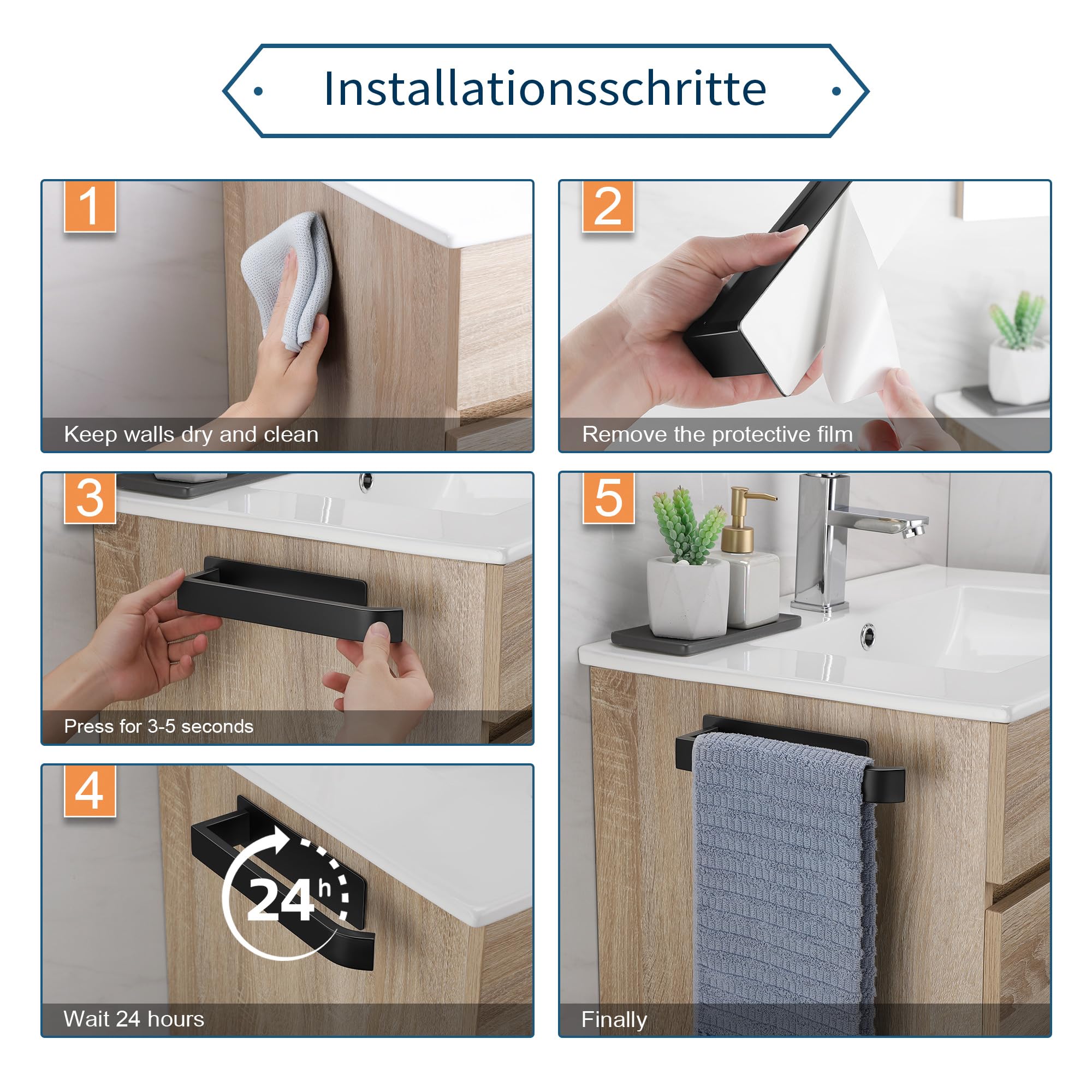 • EINFACHE INSTALLATION - Kein Bohren erforderlich. Entfernen Sie die starke selbstklebende Schutzfolie auf der Rückseite des Handtuchhalters, legen Sie ihn auf eine saubere Oberfläche und drücken Sie ihn einige Sekunden lang an, um die Installation abzuschliessen. Es besteht keine Gefahr des Herunterfallens und die Wand wird nicht beschädigt