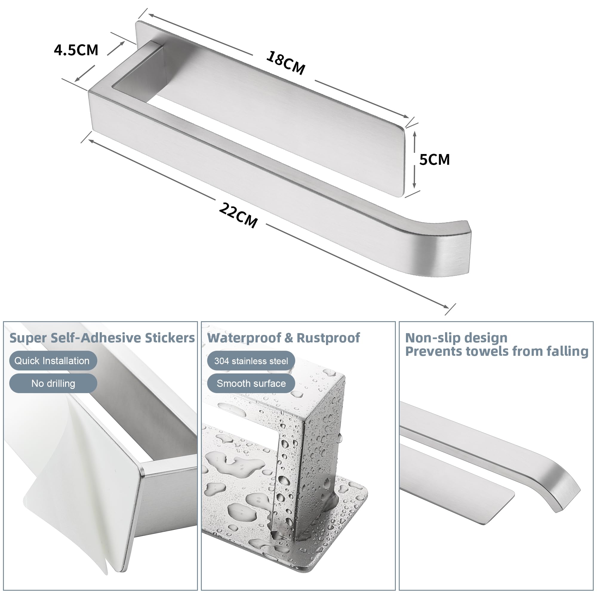 OETAMS Handtuchhalter Ohne Bohren, 304 Edelstahl Handtuchstange Selbstklebend, Einarmig Badetuchhalter, Hantuchhalterung Wand, Handtuchhalter zum Kleben für Bad and Küche, Gebürstet Silber, 22CM