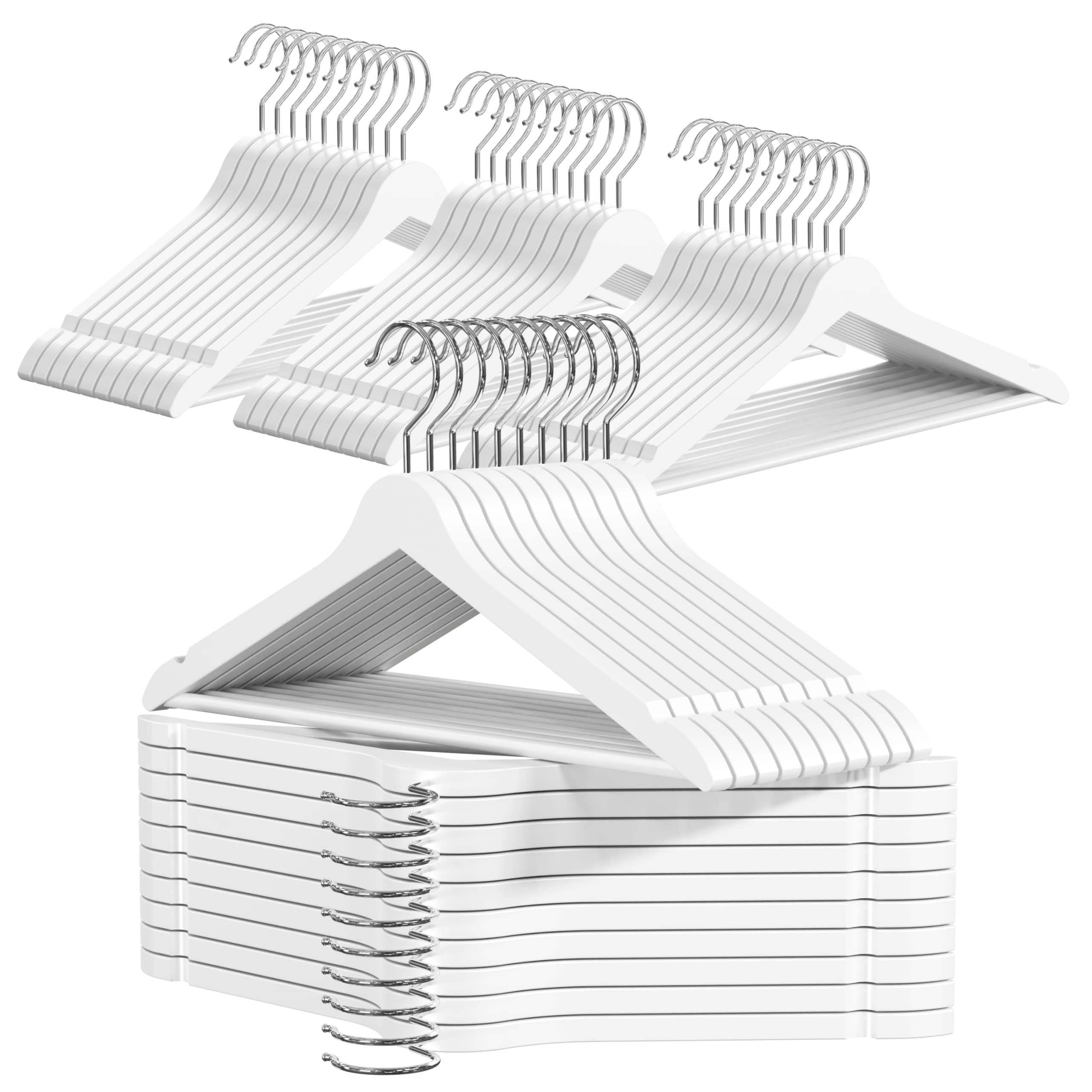 OGIVO Kleiderbügel Holz - 50er Set - Holzbügel Bügel aus Holz für Ihren Garderobe - 360° drehbarer Haken - Einkerbungen im Schulterbereich - Hangers Clothes (Weiss)