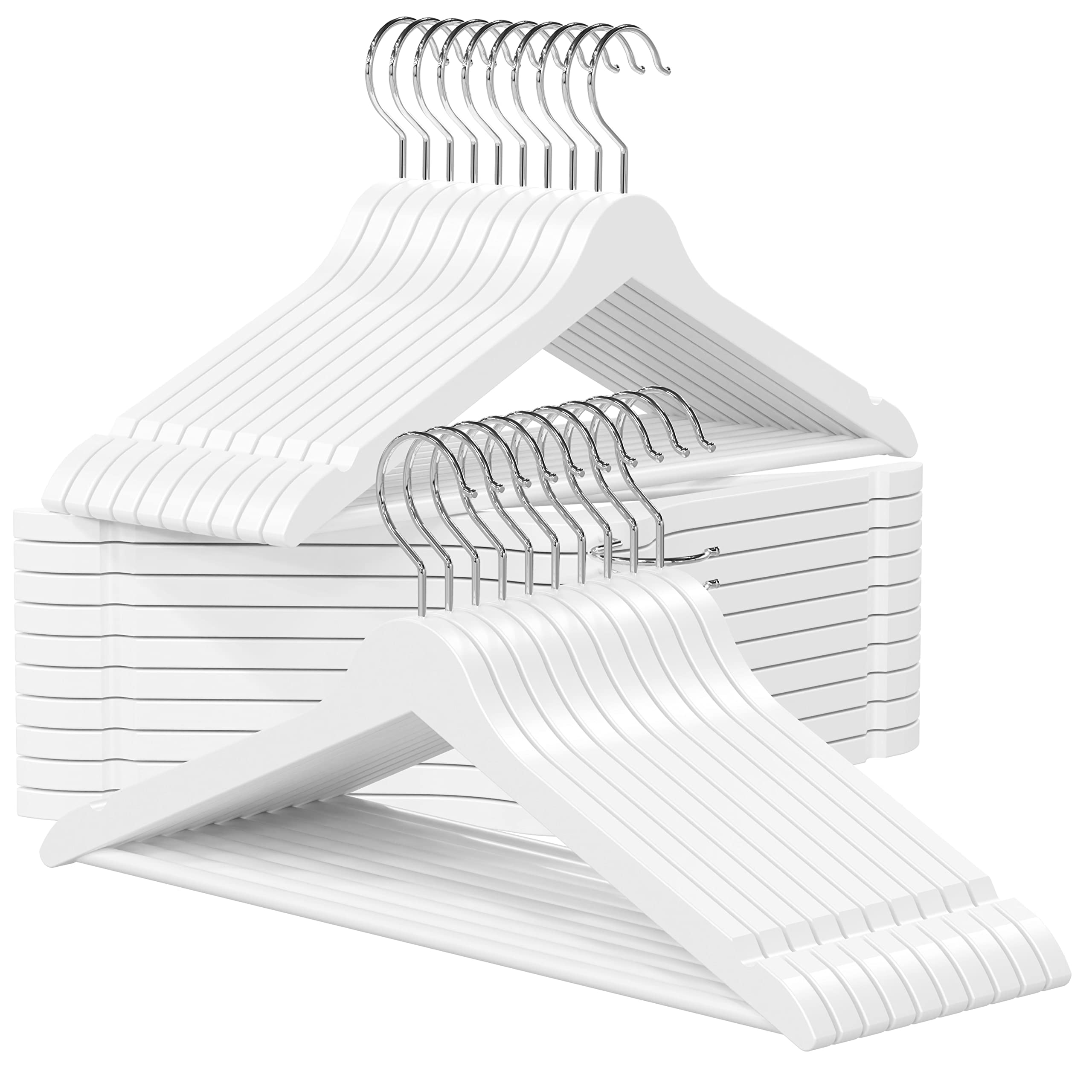 OGIVO Kleiderbügel Holz – 30er Set Holzbügel Bügel aus Holz für Ihre Garderobe – 360° drehbarer Haken – Einkerbungen an den Schultern – Hangers Clothes (Weiss)