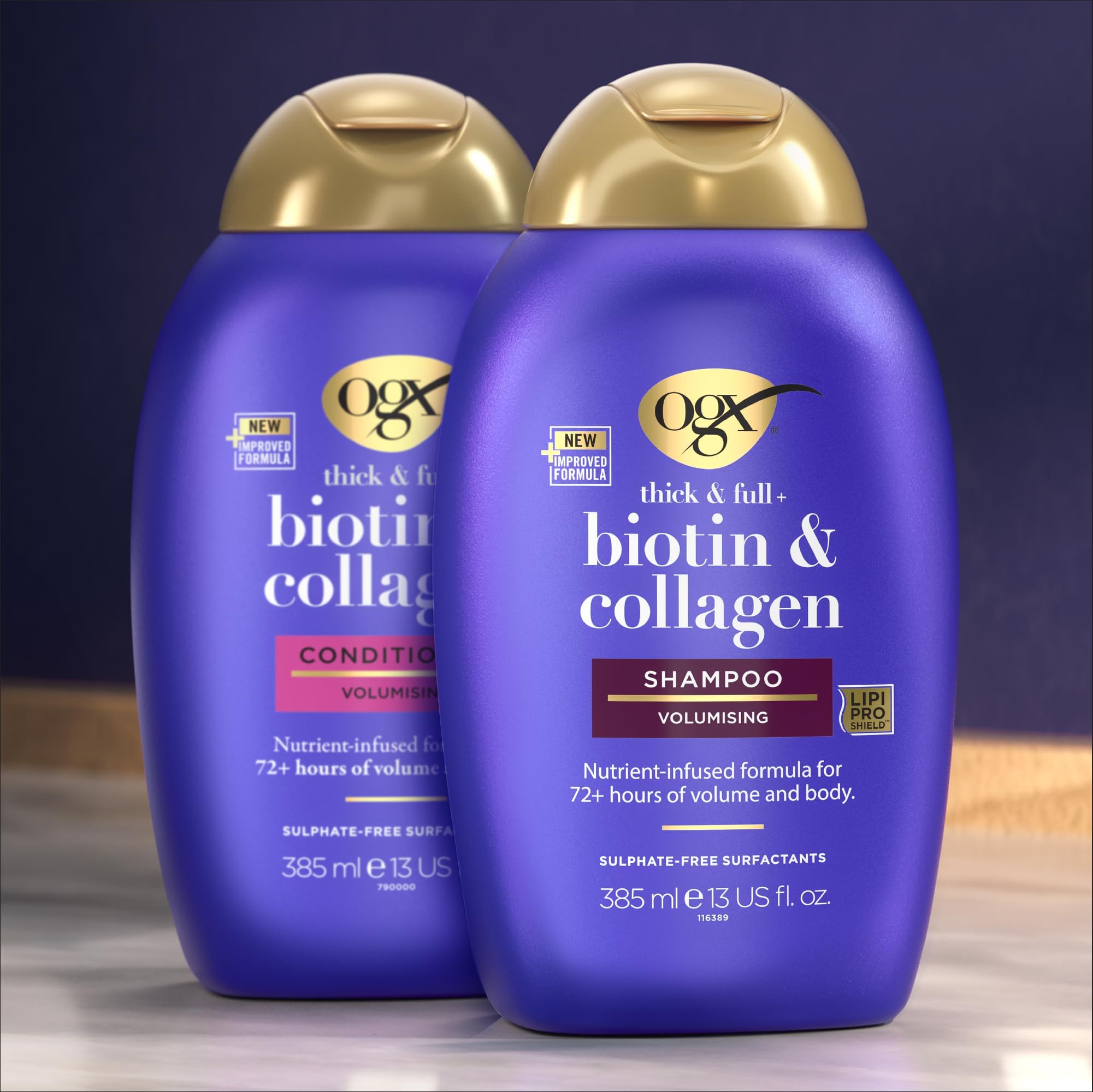 OGX Thick & Full + Biotin & Collagen Conditioner , nährstoffreiche Volumenconditioner Haarspülung mit Biotin, Kollagen und Weizenproteinen, Haarpflege, sulfatfrei , 385 ml (1er Pack)