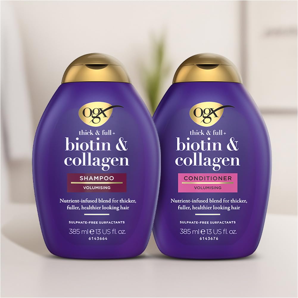 OGX Thick & Full + Biotin & Collagen Conditioner, nährstoffreiche Volumenconditioner Haarspülung mit Biotin, Kollagen und Weizenproteinen, Haarpflege, sulfatfrei, 385 ml (2er Pack)