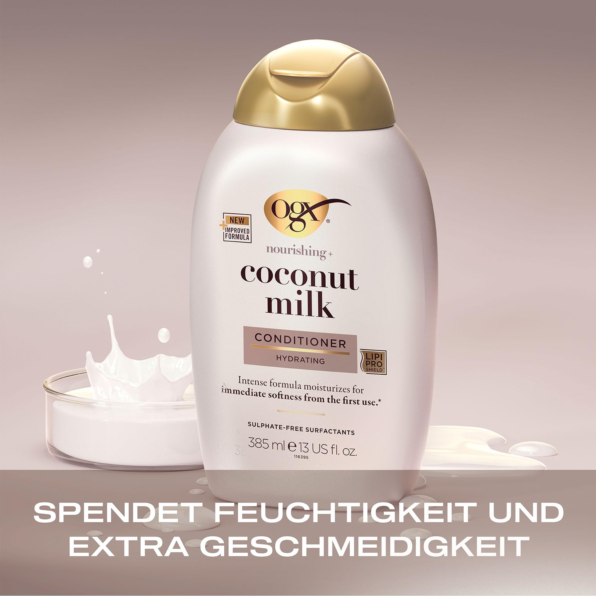 OGX Coconut Milk Conditioner 385 ml, feuchtigkeitsspendende Haarspülung mit Rizinusöl und Kokosöl für geschmeidiges, glattes und glänzendes Haar mit LipiPro Shield Technologie