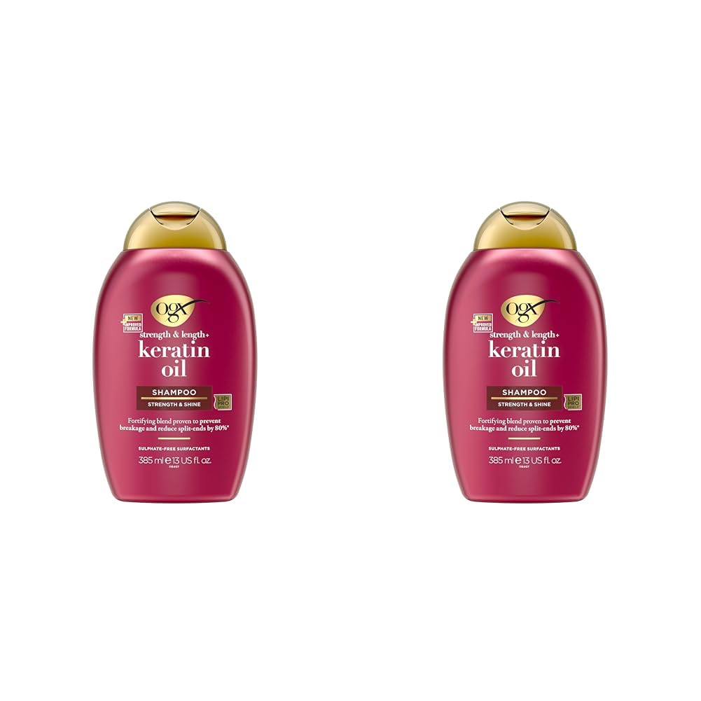 OGX Keratin Oil Shampoo (385 ml) - Kräftigendes Anti-Haarbruch Shampoo Mit Keratin Öl für Strapaziertes Haar, Verhindert Nachweislich Haarbruch Und Reduziert Spliss Um Bis Zu 80% (Packung mit 2)