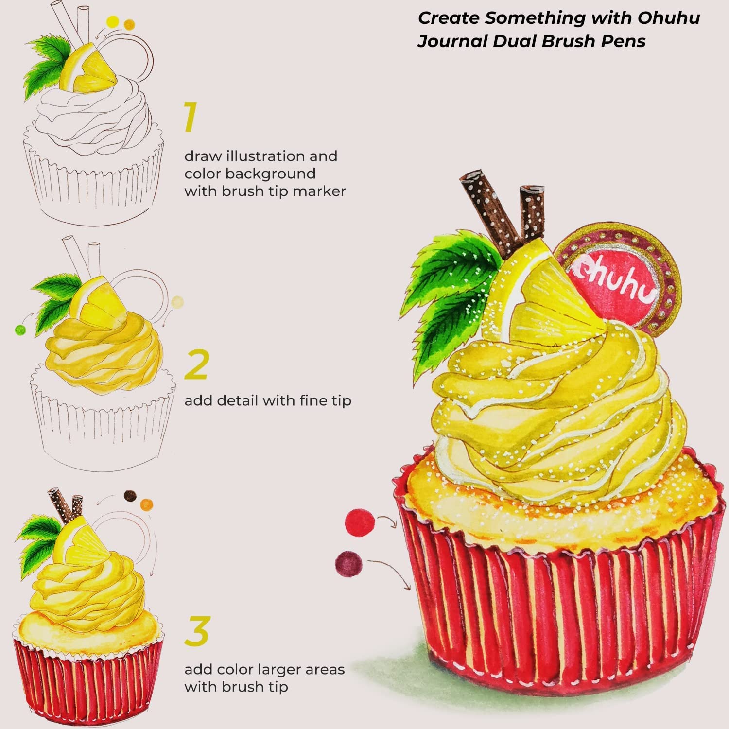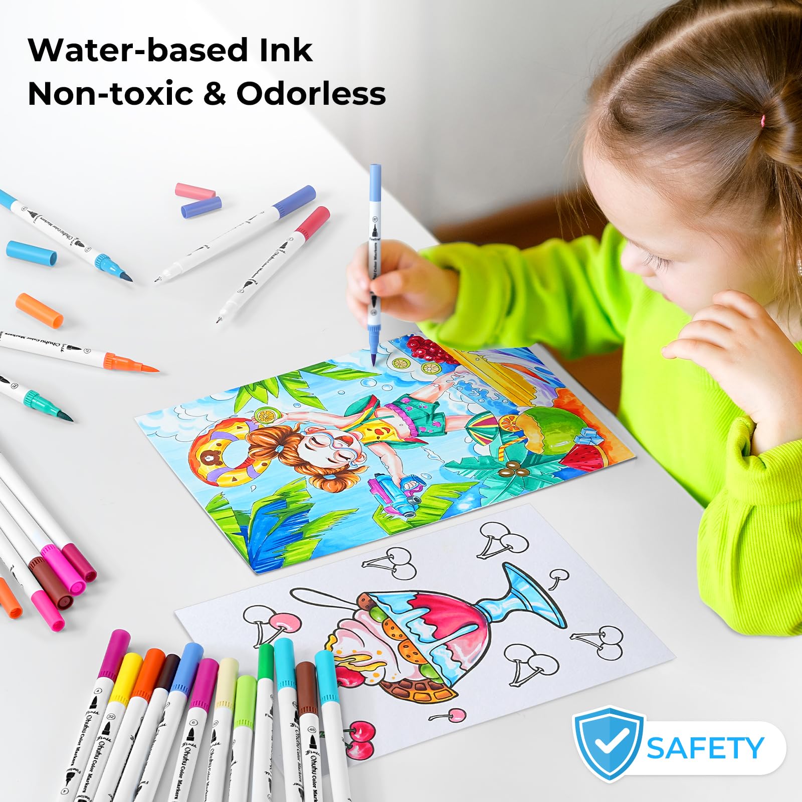 Ohuhu Filzstifte Doppelseitig, Brush Pen Pinselstifte für Erwachsene Wasserbasis Doppelfasermaler für Kalligraphie Zeichnung Manga Malbuch Handlettering Stifte für Mandalas, Maui-Serie