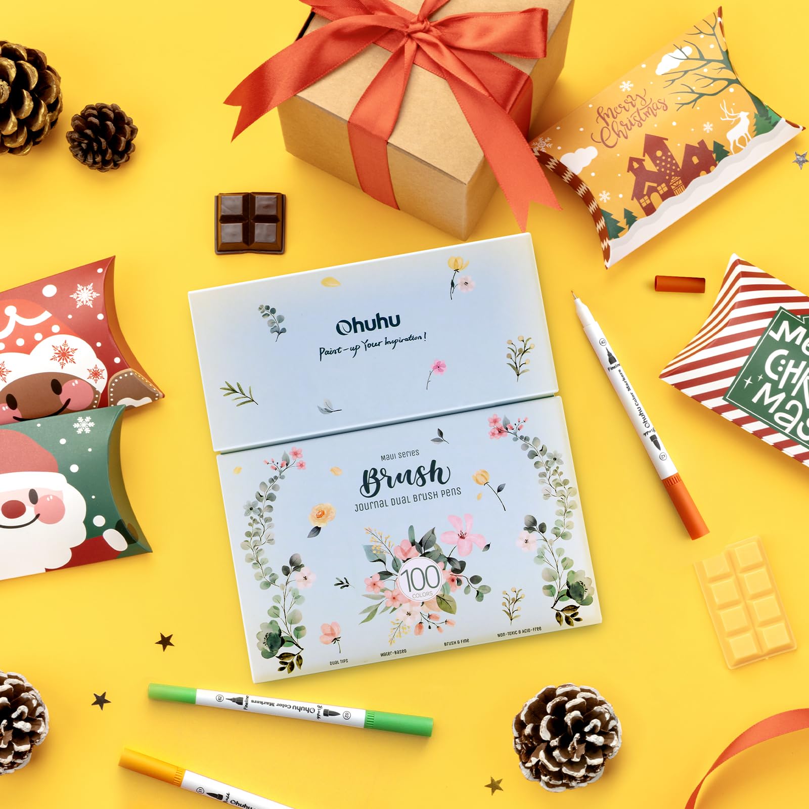 Ohuhu 100 Farben Filzstifte – Dual Brush Pen Set mit Doppelspitze (Pinsel & Fineliner), wasserbasierte Stifte für Erwachsene – Ideal für Bullet Journal, Kalligraphie Mandala, Maui Serie