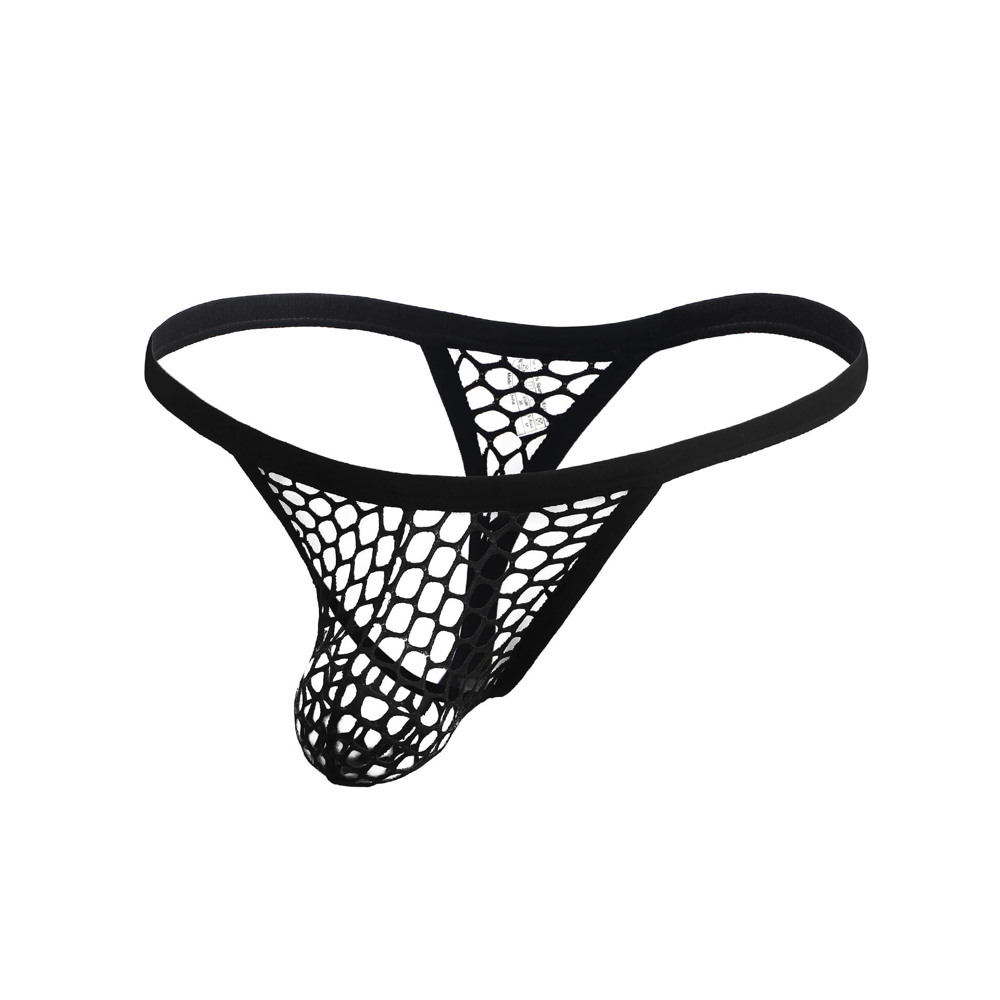 ohyeahlady Herren String Tanga Netz Slip Sexy Unterwäsche Grosse Grössen Dessous Mesh Unterhose Transparent Thong T-Back Unterhosen Elastizität G-String Low Rise Höschen Atmungsaktive Schwarz