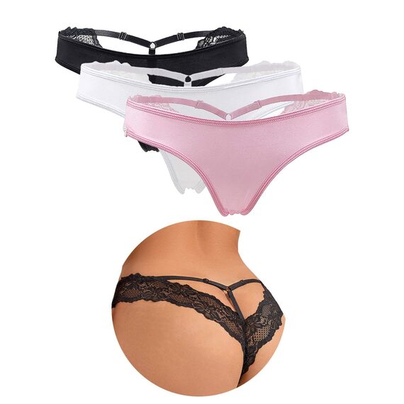 ohyeahlady Thong Brazilian Slip Damen Sexy Spitze String Tanga Set Dessous Unterwäsche Unterhosen Panty Grosse Grössen Hipster Reizwäsche 1/2/3 Packs
