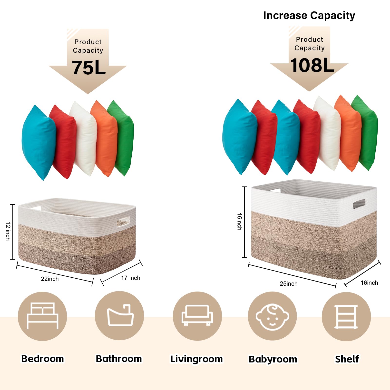 【Wohnzimmer】OIAHOMY Seil gewebter Korb kann verwendet werden, um die Decken, Kissen, Kissen, Kleidung und so weiter zu speichern. Organisieren Sie Ihr Wohnzimmer und halten Sie den Boden und das Sofa ordentlich.