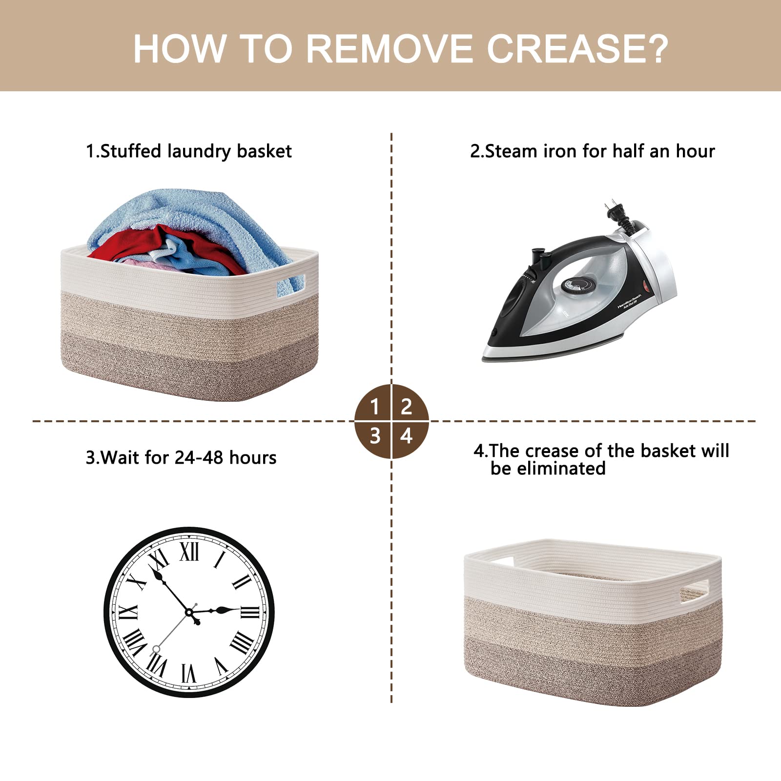 Benachrichtigungen: Der gewebte Organizer wird für Versandzwecke gefaltet, bitte füllen Sie ihn mit den Handtüchern oder Kleidung, er wird in kurzer Zeit wieder in die ursprüngliche Form zurückkehren.