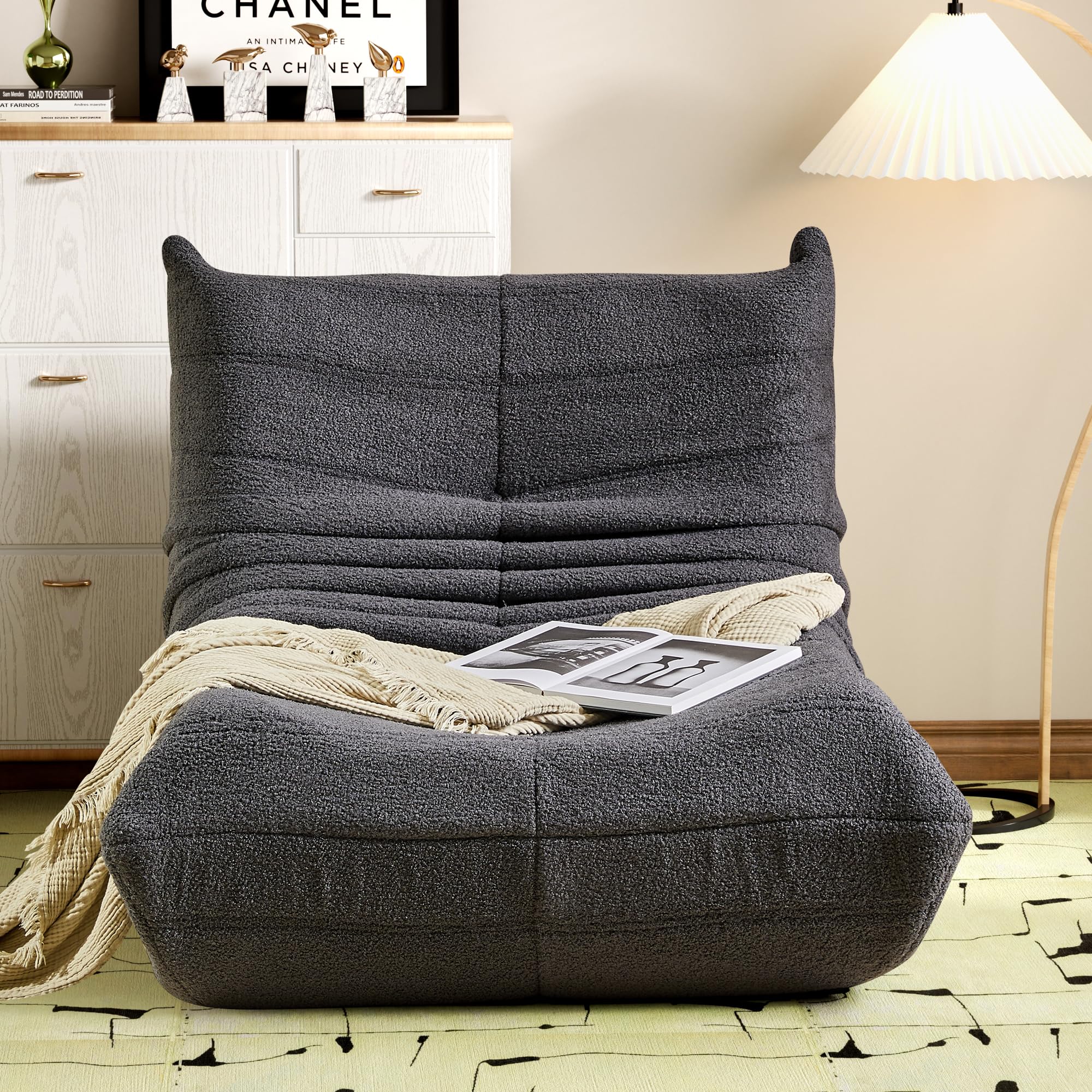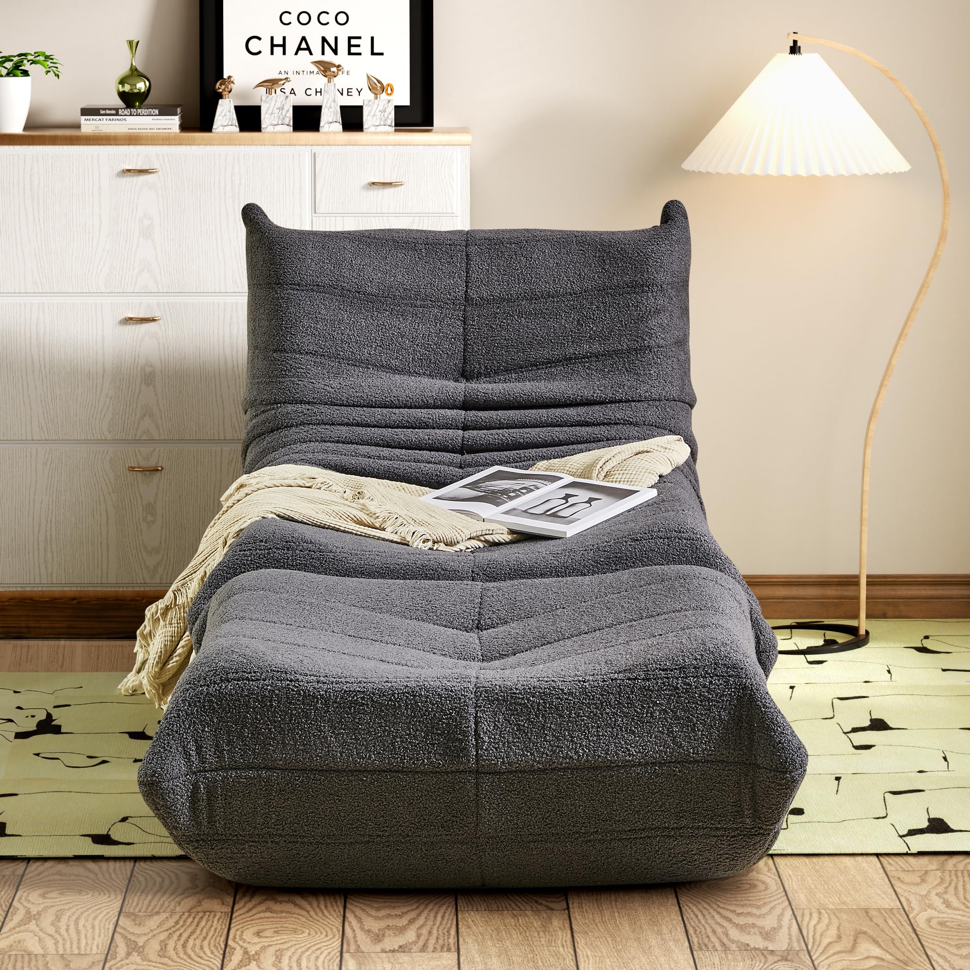 okwish Schlafsofas Relaxsessel mit Rückenlehne und Fussstütze, Lazy Sofa, Indoor-Sitzkissen, Faltbarer Meditationsstuhl, geeignet für Schlafzimmer, Wohnzimmer, Grau