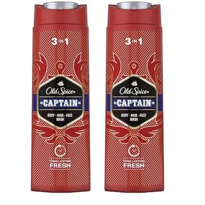 Old Spice Captain 3-in-1 Duschgel & Shampoo 400 ml (Packung mit 2) – Lang anhaltender, Frischer Duft für Haare, Gesicht & Körper