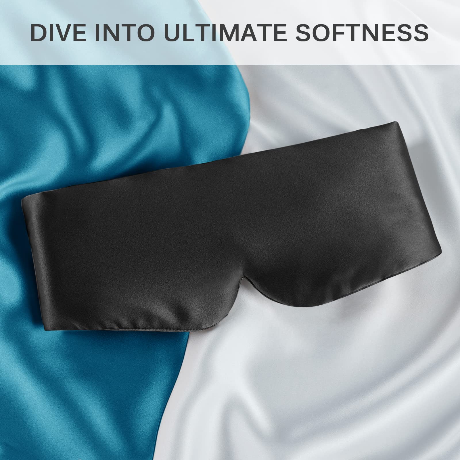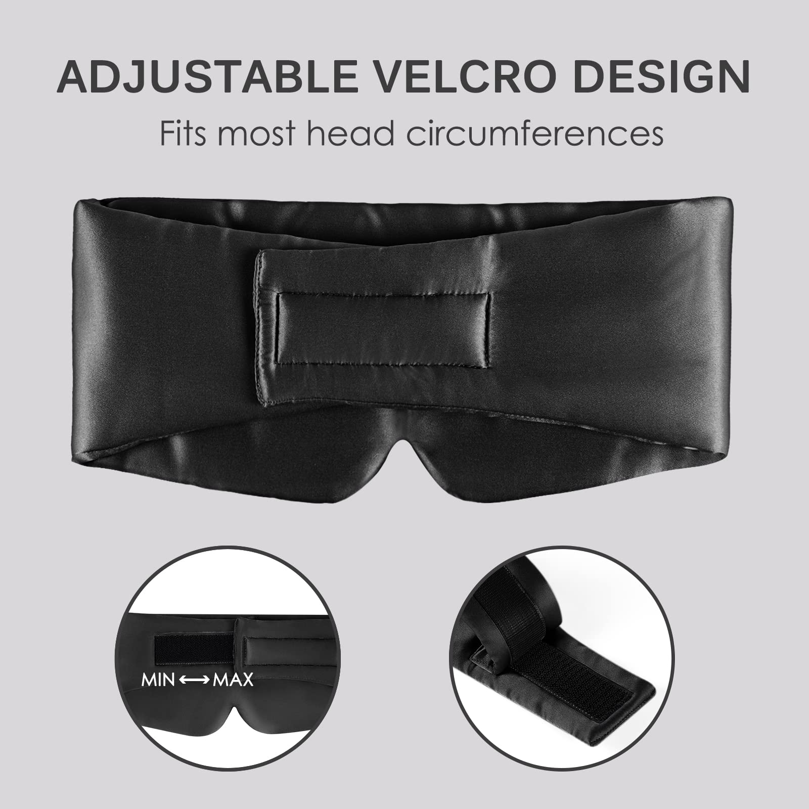 OLESILK 100% Maulbeerseide Schlafmaske Augenmaske mit verstellbarem Kopfband für Herren und Frauen, grosse Schlafmaske und Augenbinde für Nachtschlaf, Reisen und Nickerchen, Schwarz