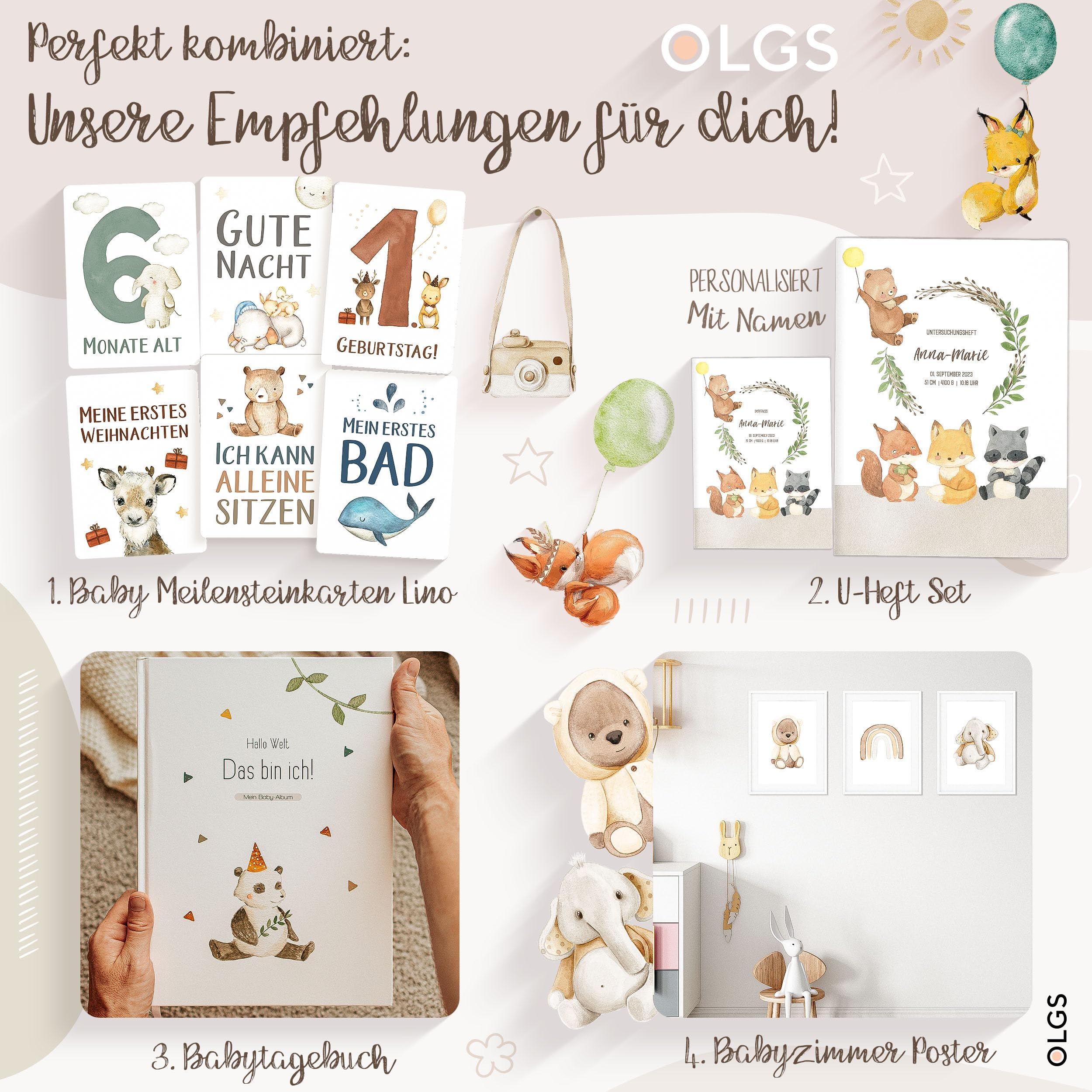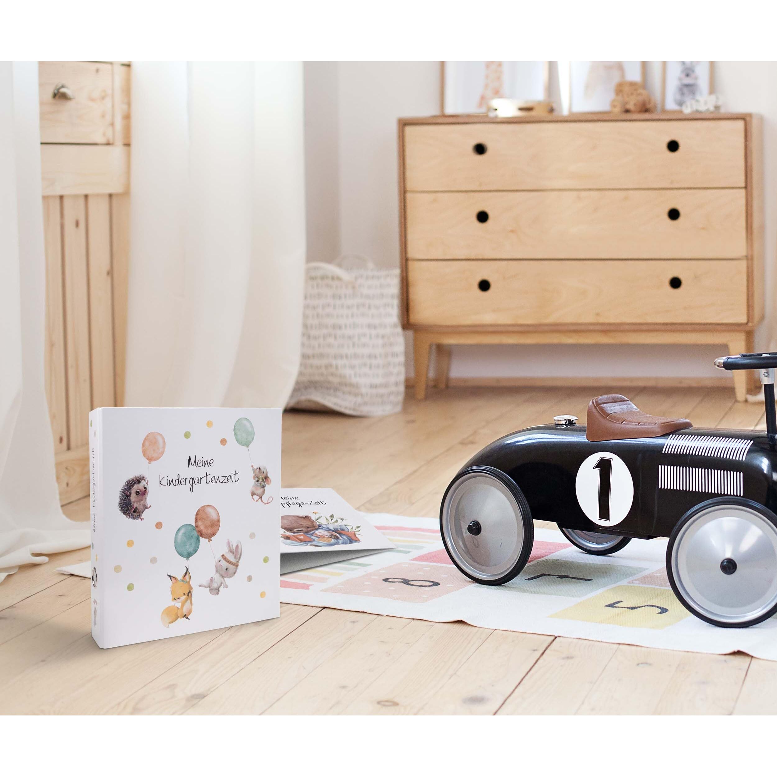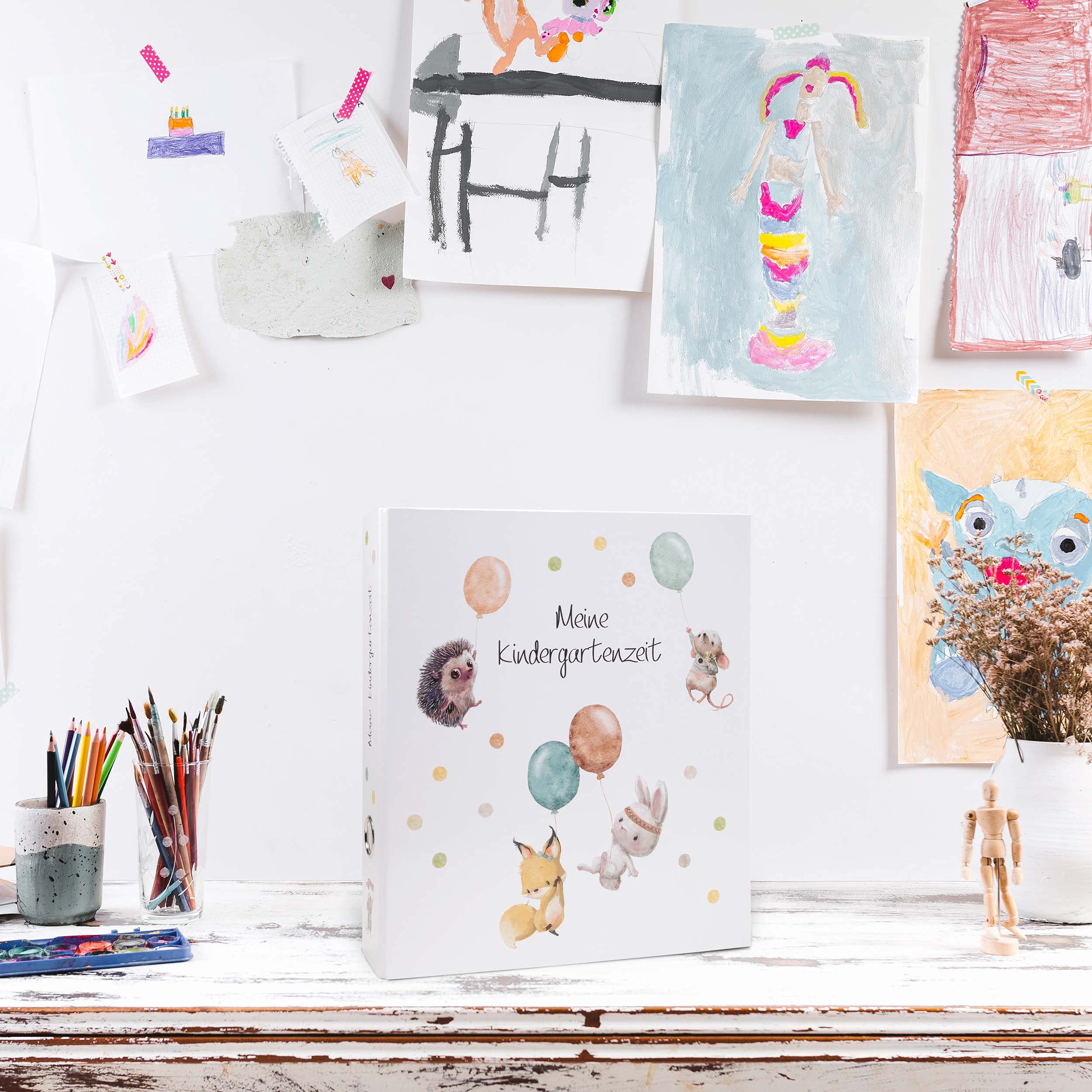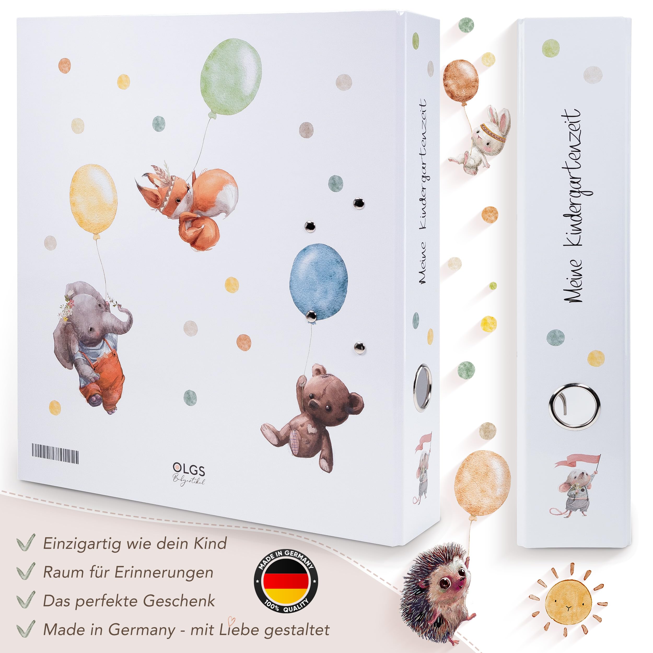 OLGS Sammelordner Meine Kindergartenzeit Ordner für Kinder | Erinnerungsordner, Kindergartenordner Fuchs, Hase, Maus, Igel, Luftballon | Geschenk, Kita, Kindergarten, Schule, Sammelmappe - Hoch hinaus