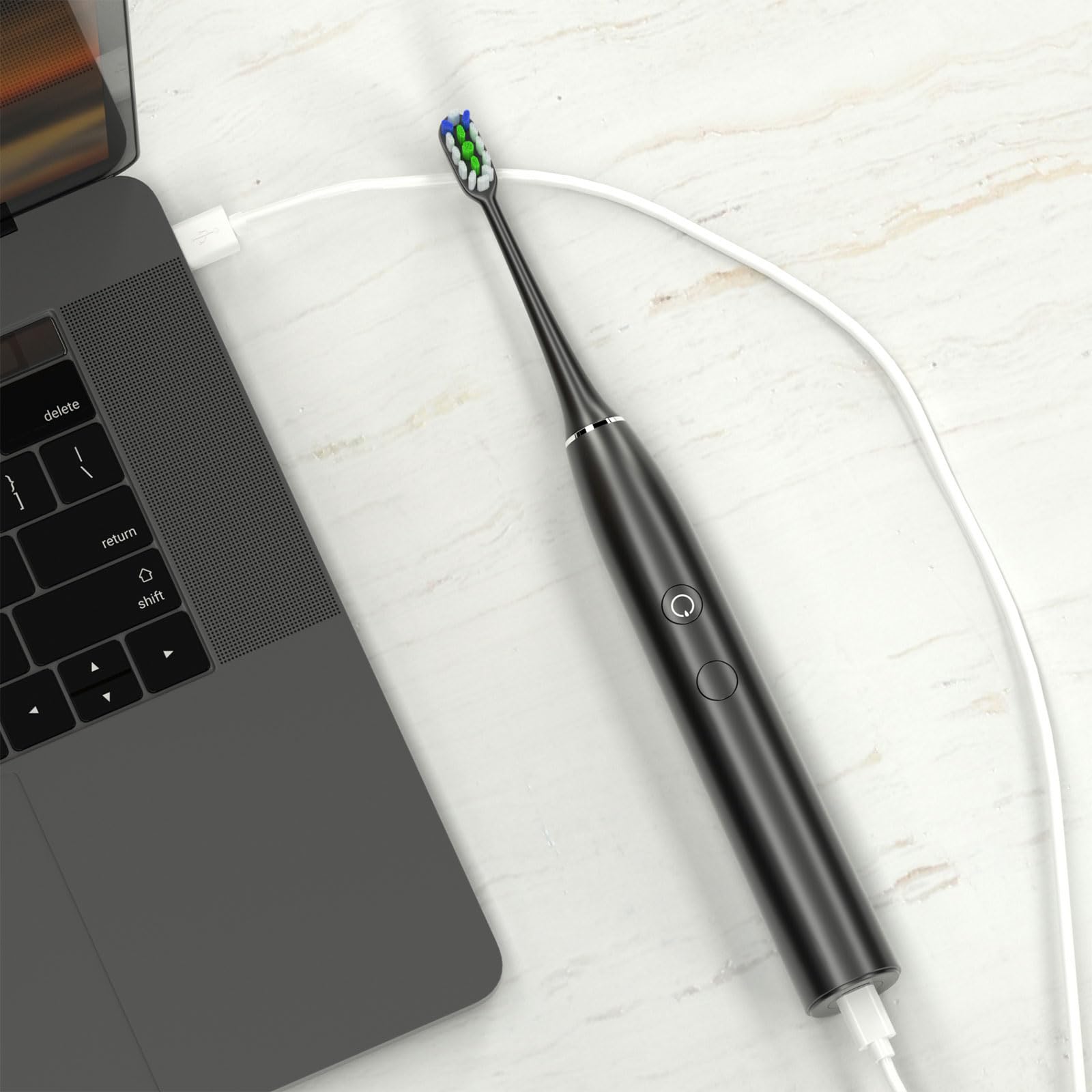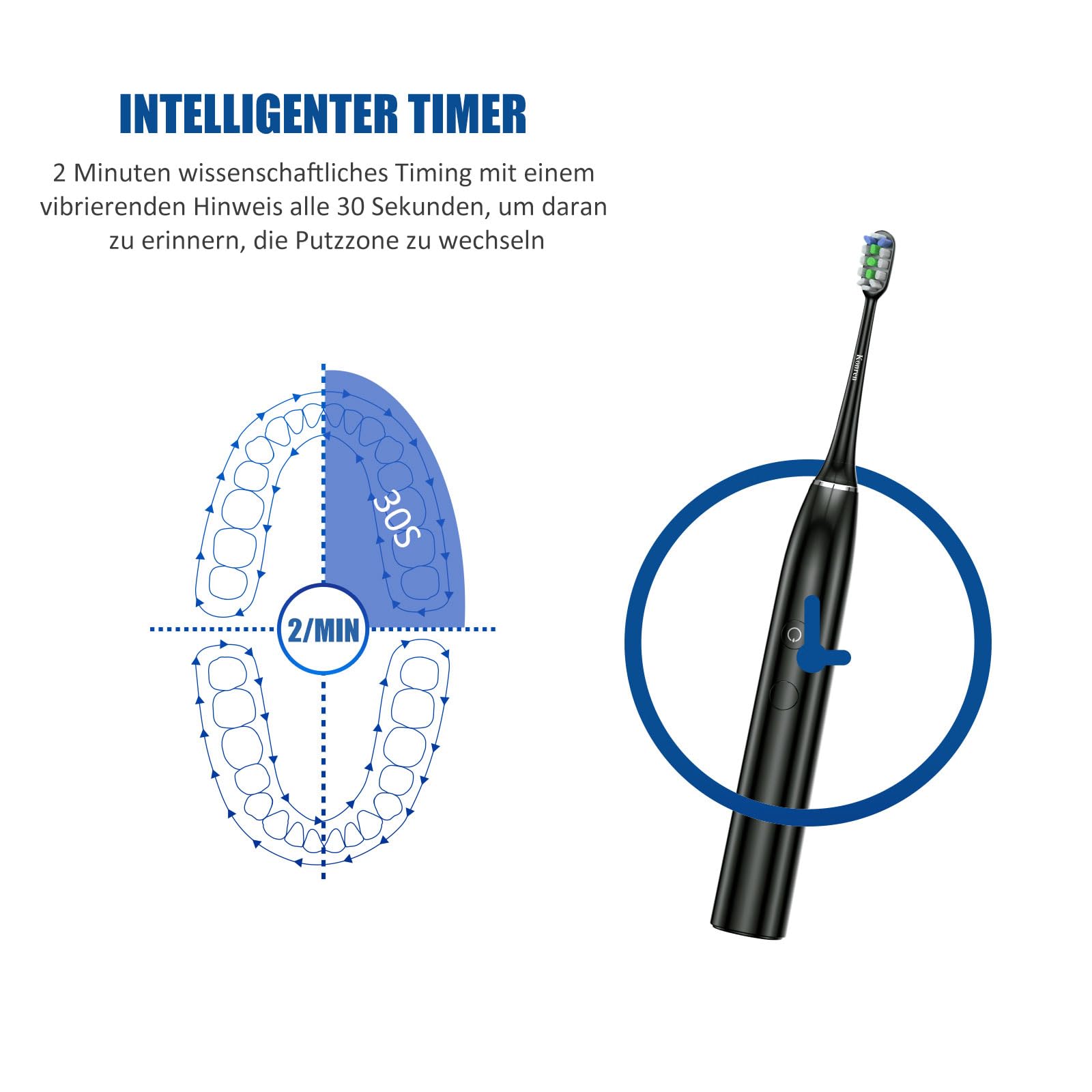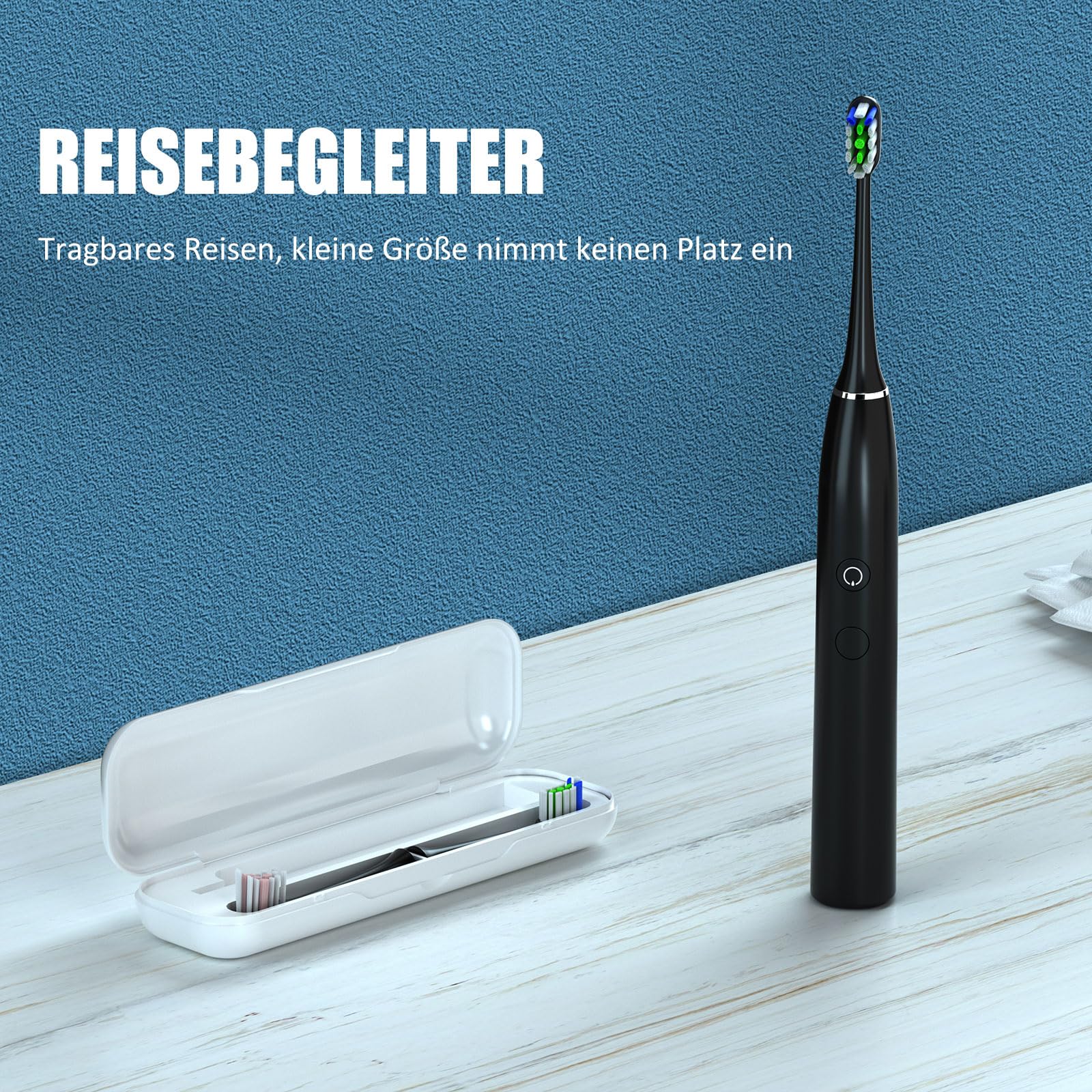 Olybo elektrische Zahnbürste Schallzahnbürste doppelpack 一 ST-A9, 2 Handstück und 2 Reise-Etui, 5 Modi mit 10 Ersatzbürstenköpfe5 Modi Zahnbürste: 5 Putzmodi (Clean/White/Polish/Gum Care/Sensitive) , um unterschiedliche Mundbedingungen und unterschiedliche Putzstile zu erfüllen.Über die Elektrische Zahnbürste ???? Die Elektrische Zahnbürste verbessern die Zahnfleischzirkulation und die Zahngesundheit. 10 DuPont Nylonbürstenköpfe. Die intelligente Zahnbürste besteht aus Dupont-Nylon und passt sich perfekt den Konturen Ihrer Zähne und Ihres Zahnfleisches an. Der Zahnarzt empfiehlt, den Zahnbürstenkopf alle 3 Monate auszutauschen. ???? IPX7 wasserdicht. Eine IPX7 wasserdichte Bewertung. Durch IPX7 wasserdicht kann die gesamte Zahnbürste sicher mit Wasser gespült werden. und ist 100% waschbar, so können Sie sie auch unter der baden und Dusche verwenden. Perfekt für zu Hause oder auf Reisen. ???? 2 Minuten eingebauter Smart Timer. Pausiert kurz alle 30 Sekunden und schaltet sich automatisch ab, wenn 2 Minuten abgelaufen sind. Die Auto-Timed-Funktion stellt sicher, dass ein Zahnarzt die empfohlene Reinigungsgewohnheit empfiehlt. ???? Schallzahnbürste Technologie für eine überlegene Reinigung. Geräuscharme Schallvibrationen bis zu 48.000 Mikrobürsten pro Minute. Sie erhalten eine Reinigung, entfernen mehr Flecken und Plaque und beugen Zahnproblemen vor. ???? Lange Akkulaufzeit, Nimmt keinen Platz ein, ist leicht und praktisch. Schnelles kabelloses Laden. Lange Akkulaufzeit durch USB-Aufladung unterstützt. Stellen Sie den Akku einfach wieder auf den Standfuss, um ihn aufzuladen. Nach dem vollständigen Aufladen wird er automatisch ausgeschaltet. Paket beinhaltet2 x Elektrische Zahnbürste10 x Ersatzbürsten mit Schutzhülle2x Reise-Etui2 x USB-Ladestation1 x Zahnbürste Benutzerhandbuch