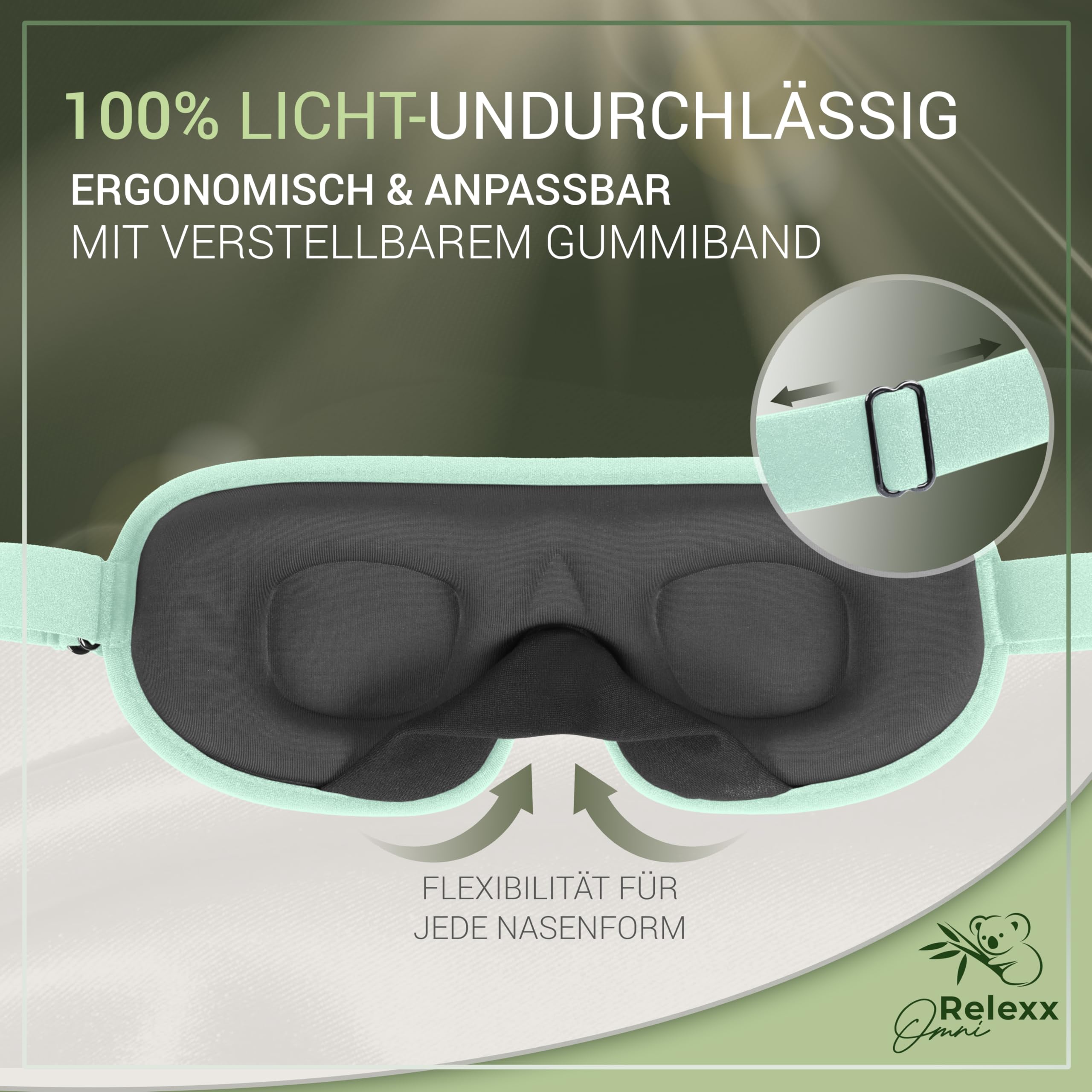 OMNIRELEXX Schlafmaske für Frauen und Herren – Atmungsaktive Schlafbrille – Bequeme und weiche Augenmaske - Lichtblockierend - Reisebeutel - 3D Vertiefung für die Augen - Memory Schaum (Türkis).