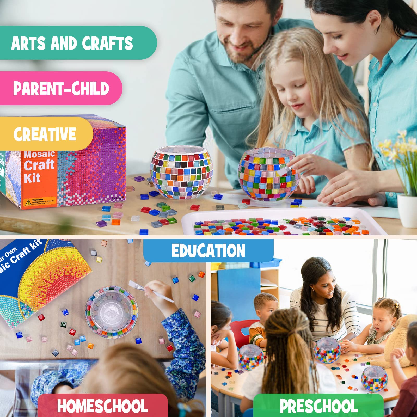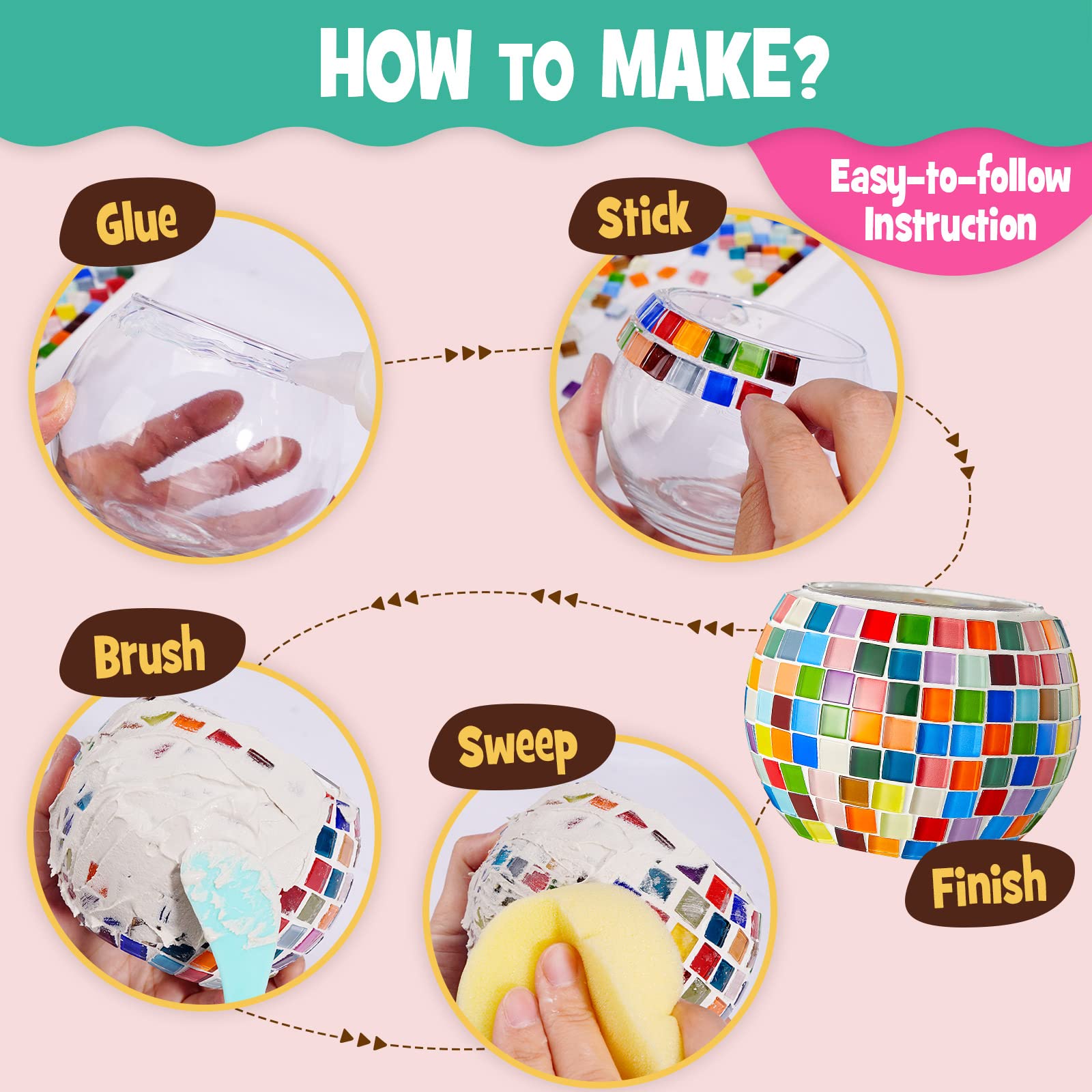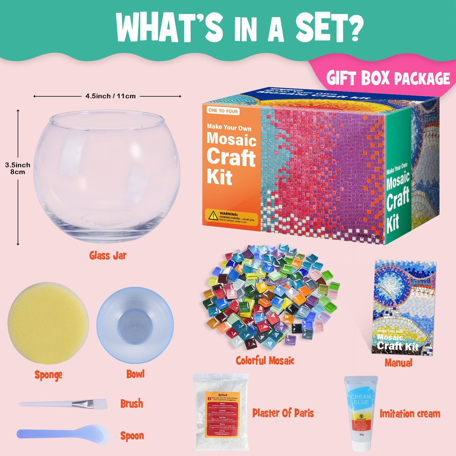 ONE TO FOUR Glasmosaik-Kerzenhalter-Kit,Kreative Mosaik Bastelset Kinder, Geschenk Mädchen 6-12 Jahre,Geburtstagsgeschenk für Mädchen Jungen,Bastelset Erwachsene Teelichthalter für Zuhause Dekoration