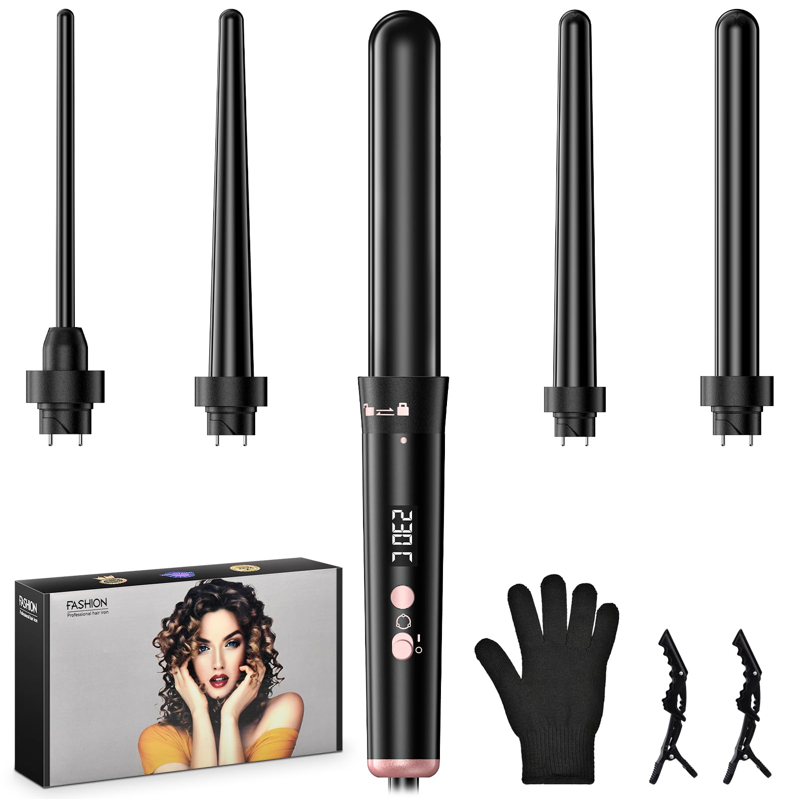 Onftrym Lockenstab,5 in 1 Lockenstab Set,Keramik lockenstab mit Verschiedenen Aufsätzen für Grosse und Kleine Locken,Curling Iron 160℃-230℃ Einstellbar,Welleneisen Für Haare mit Handschuhe & 2 Clips
