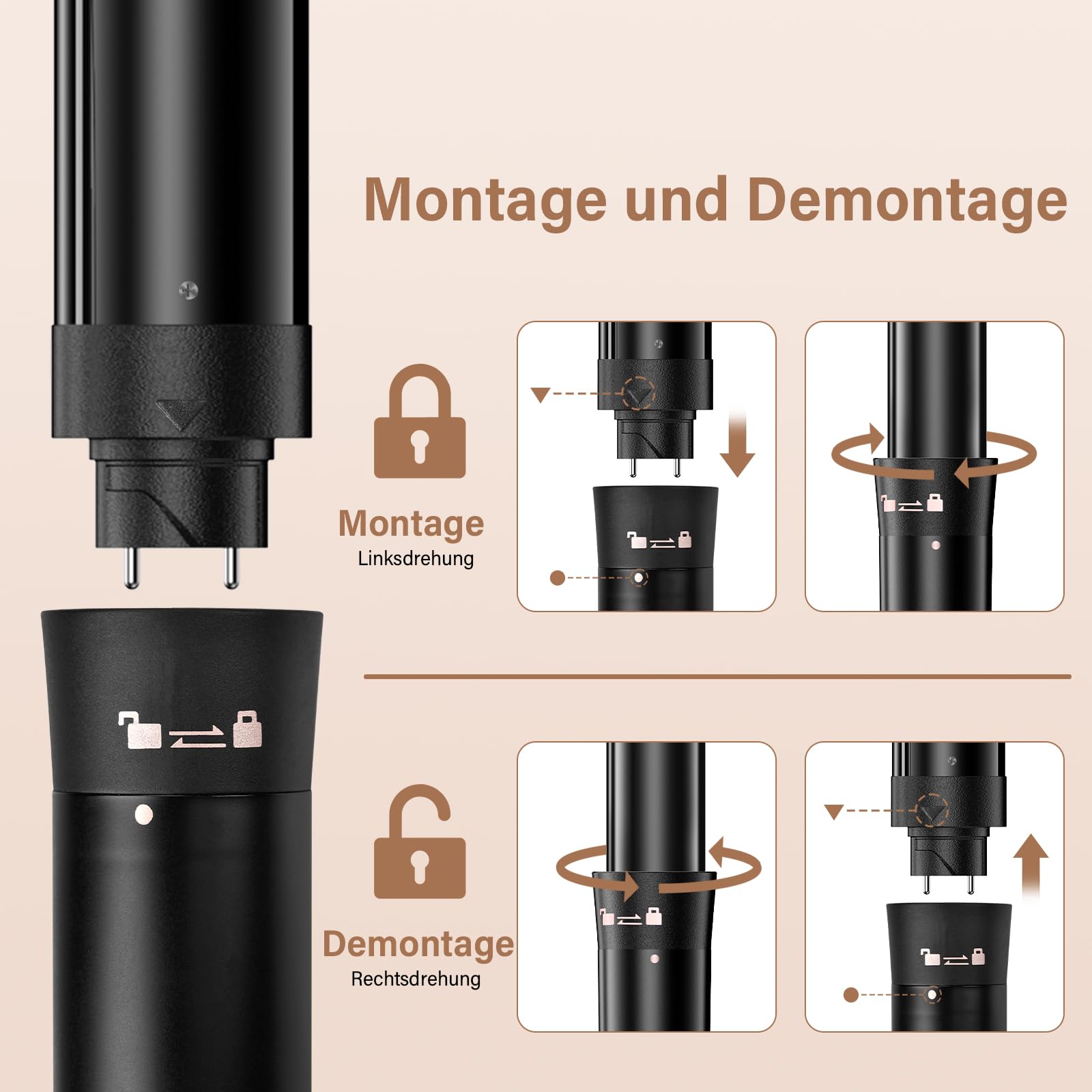 • 【Einfach zu bedienen】Dieser Lockenstab bietet austauschbare Stäbe, einfach mit dem Schlitz ausrichten und das Zubehör einlegen, um sie zu montieren. Es ist das perfekte Geschenk für Tochter, Frau und Mädchen. Damit können Sie ganz einfach jede Frisur kreieren, die Sie möchten. Ebenfalls enthalten ist ein isolierender Handschuh und zwei Clips. Wenn Sie während der Verwendung Hilfe benötigen, zögern Sie nicht, uns zu kontaktieren