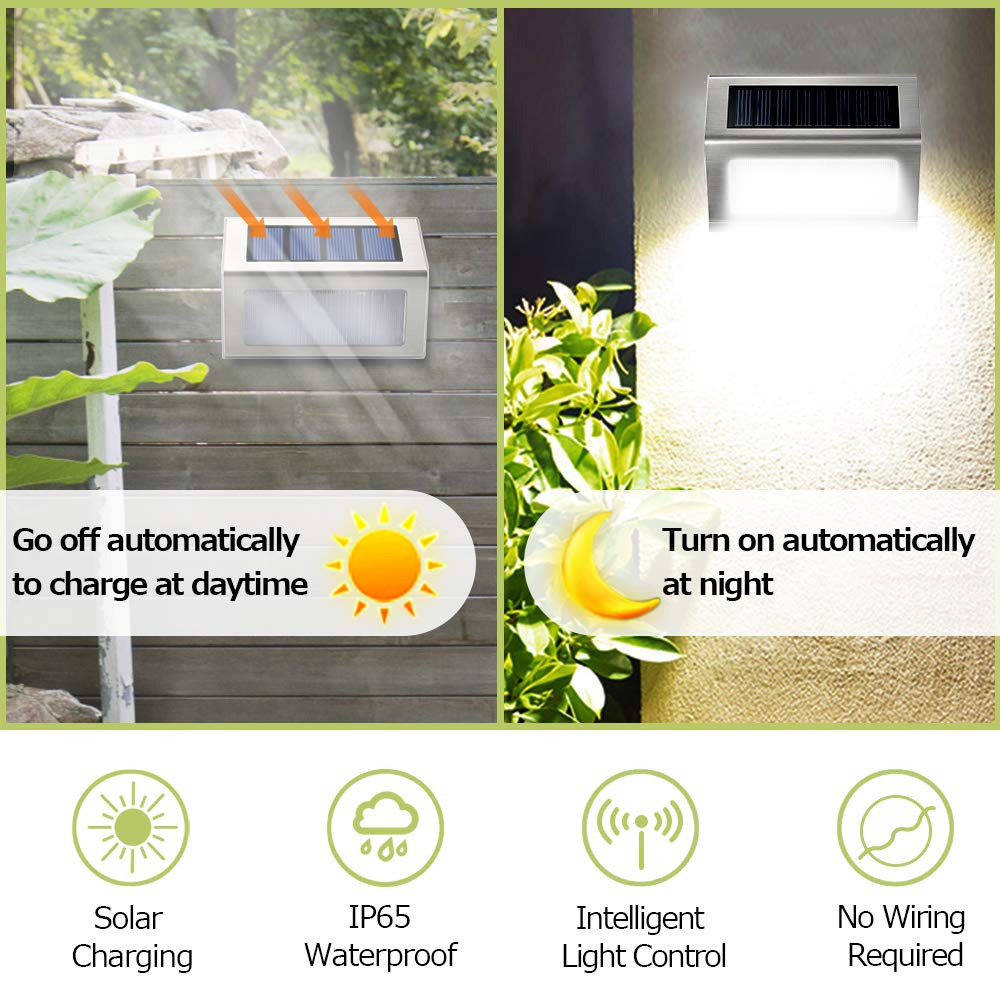 - 【Kaltes, angenehmes Licht】 Diese Solarleuchten reichen aus, um den Zaun, die Garage, Stufen, die Terasse, den Hof oder den Garten zu beleuchten, damit es für Sie und Ihre Familie sicher ist, nachts nach draussen zu gehen.