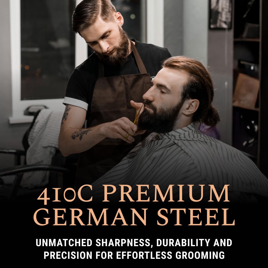 • Vielseitige Pflegewerkzeuge: Diese Friseurscheren sind auf die unterschiedlichen Bedürfnisse von Gesichtsbehaarung zugeschnitten und sorgen für saubere Schnitte an Bart, Schnurrbart und Augenbrauen. Erleben Sie eine sanfte, ziehfreie Pflege mit dieser unverzichtbaren Ergänzung zu jedem Barttrimmer oder Schnurrbart-Pflegeset.