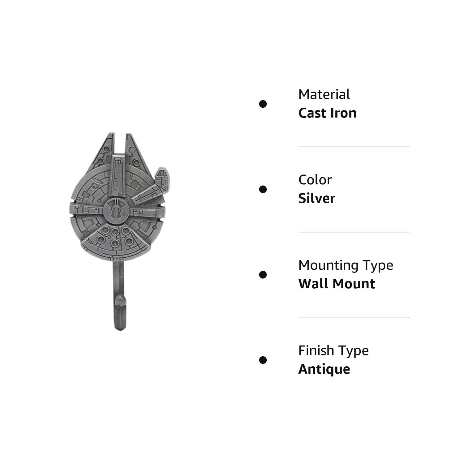 Open Road Brands Millennium Falcon Wandhaken aus Gusseisen, 100% Gusseisen, Wandmontage, 1 Stück, Silber, Stern, Star Wars, Wand, Schlüsselhalter, Jacken, Schlüssel, Werkzeuge, Dekoration