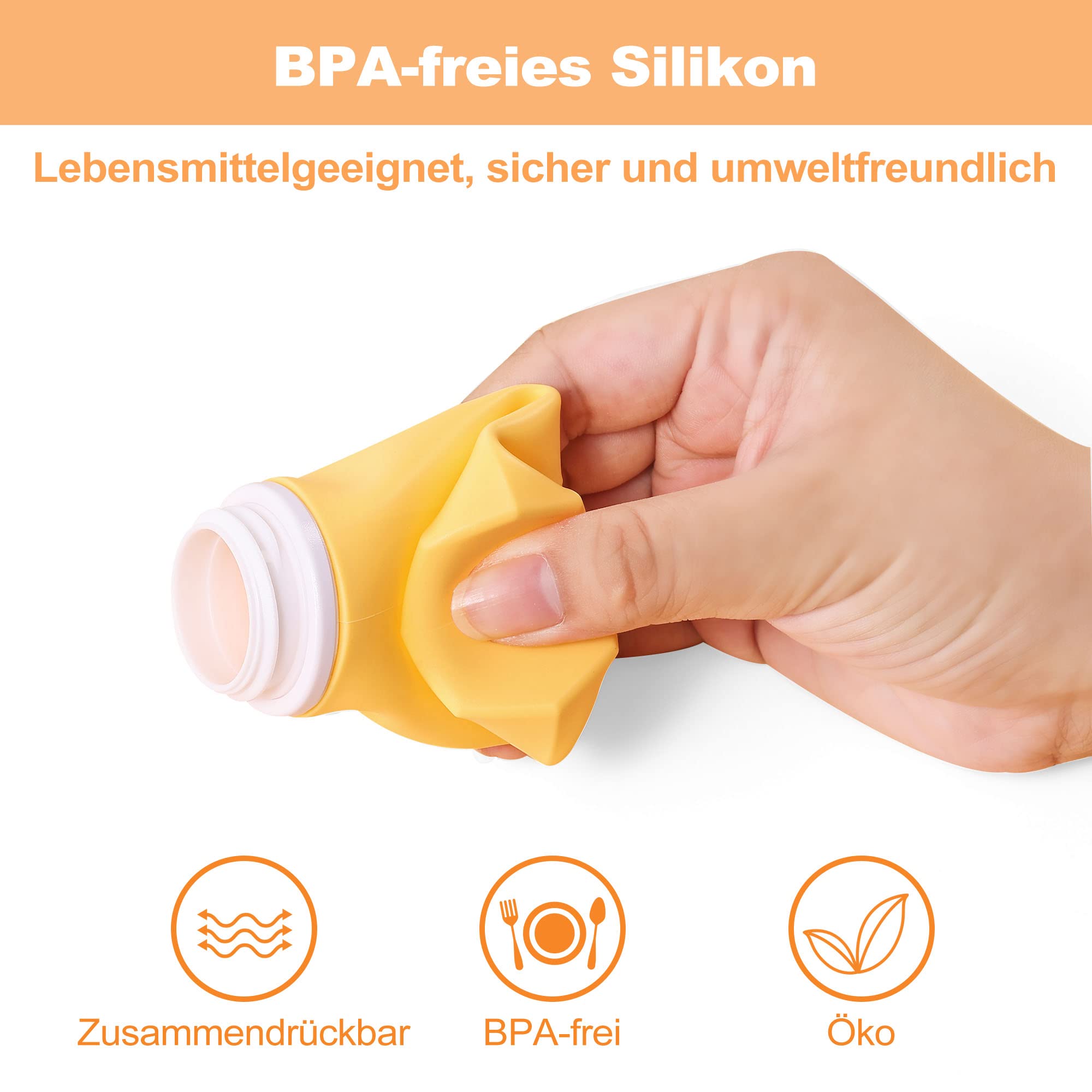 BPA-FREI & FDA-ZERTIFIZIERT: Aus 100 % BPA-freiem, lebensmittelechtem Silikon. Langlebig, geruchlos, nachfuellbar und wiederverwendbar.