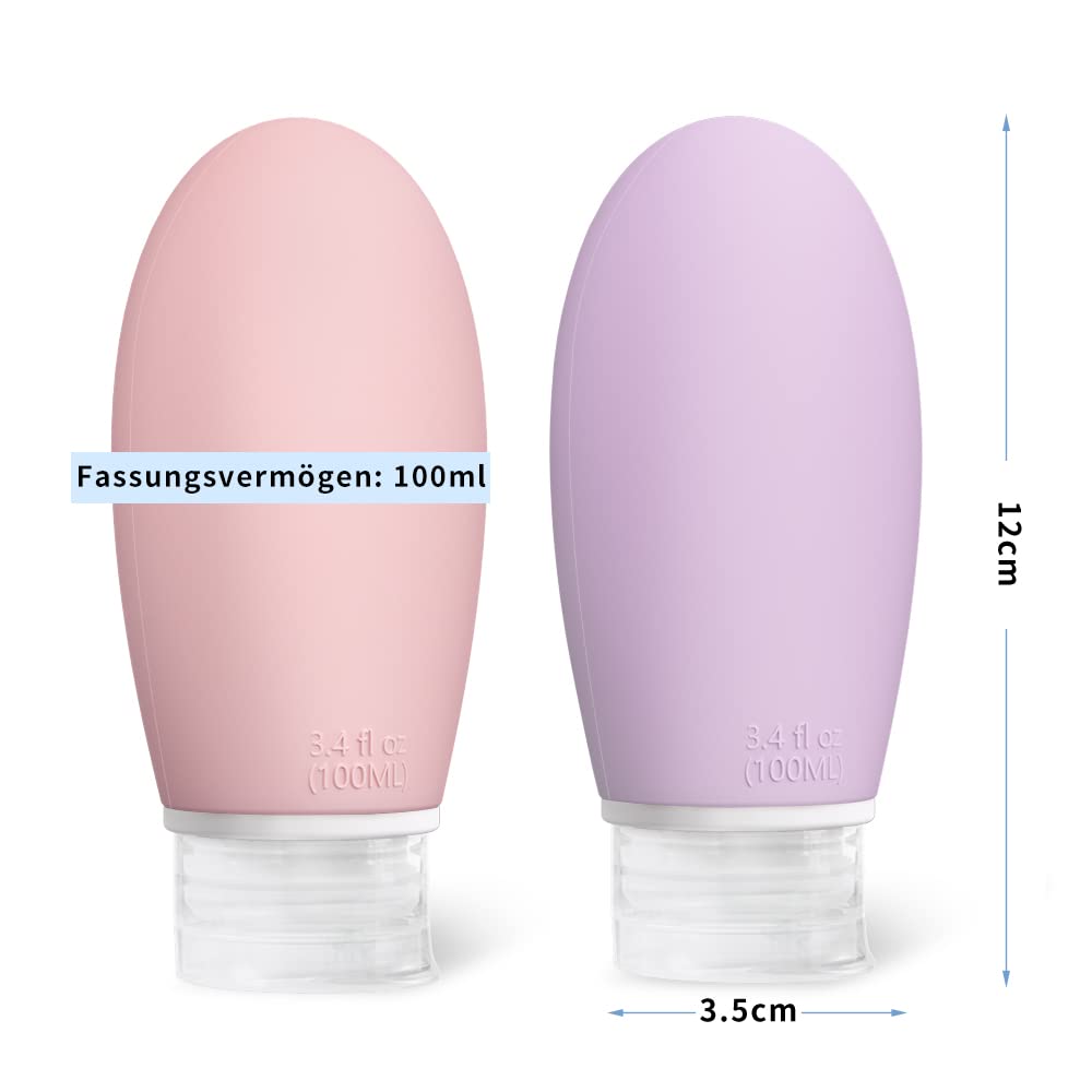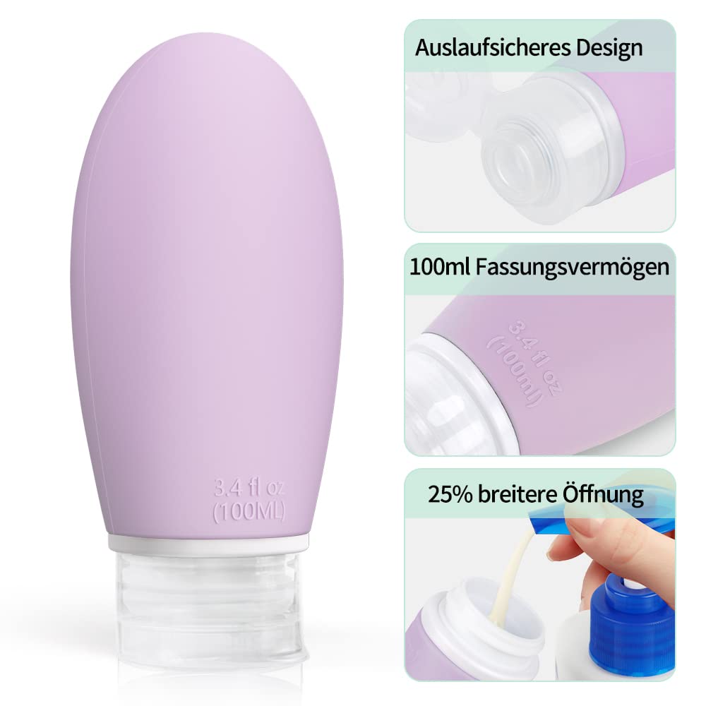 Opret Silikon Reiseflaschen Set – 4 Stueck 100 ml auslaufsichere, nachfuellbare Reisebehaelter