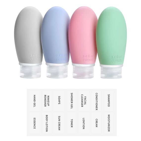 Opret Silikon Reiseflaschen Set – 4 Stueck 100 ml auslaufsichere Reisebehaelter mit Etiketten