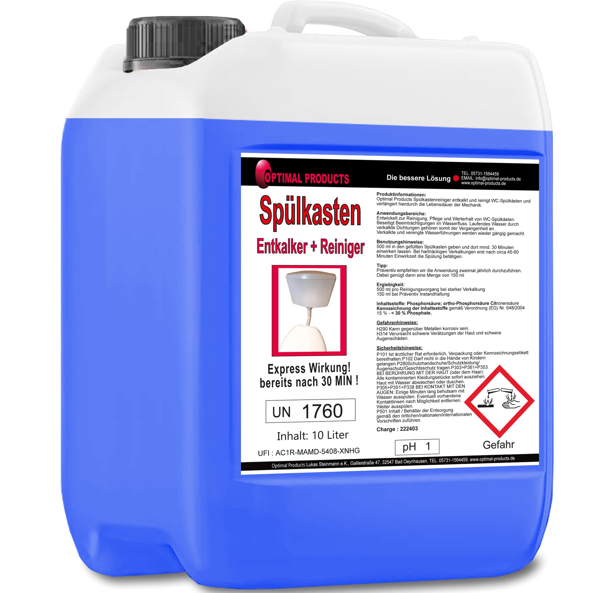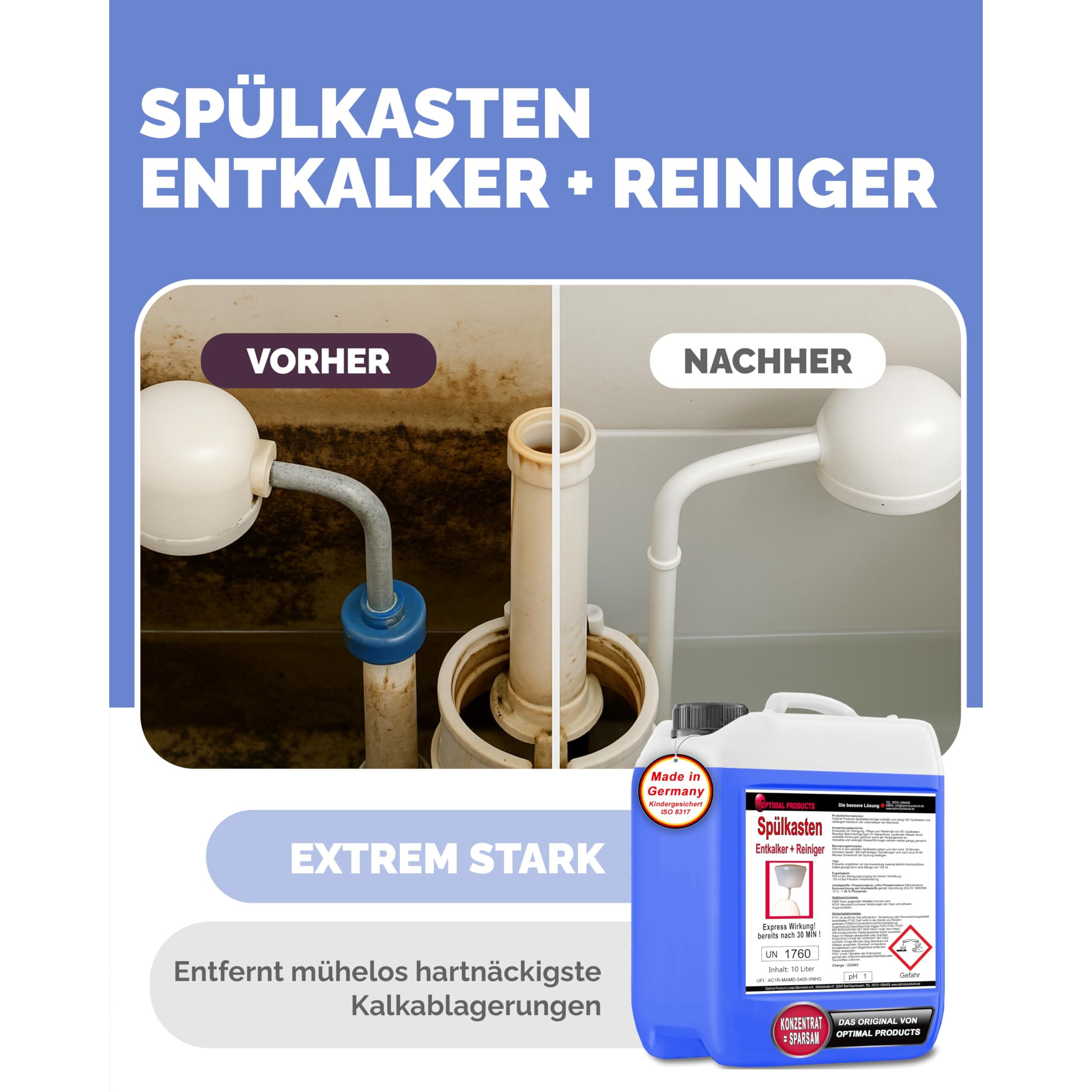 Optimal Products 10 Liter Spülkasten Entkalker mit Express-Wirkung nach 30 Minuten, 2 in 1 - Löst Kalk und reinigt den WC-Spülkasten