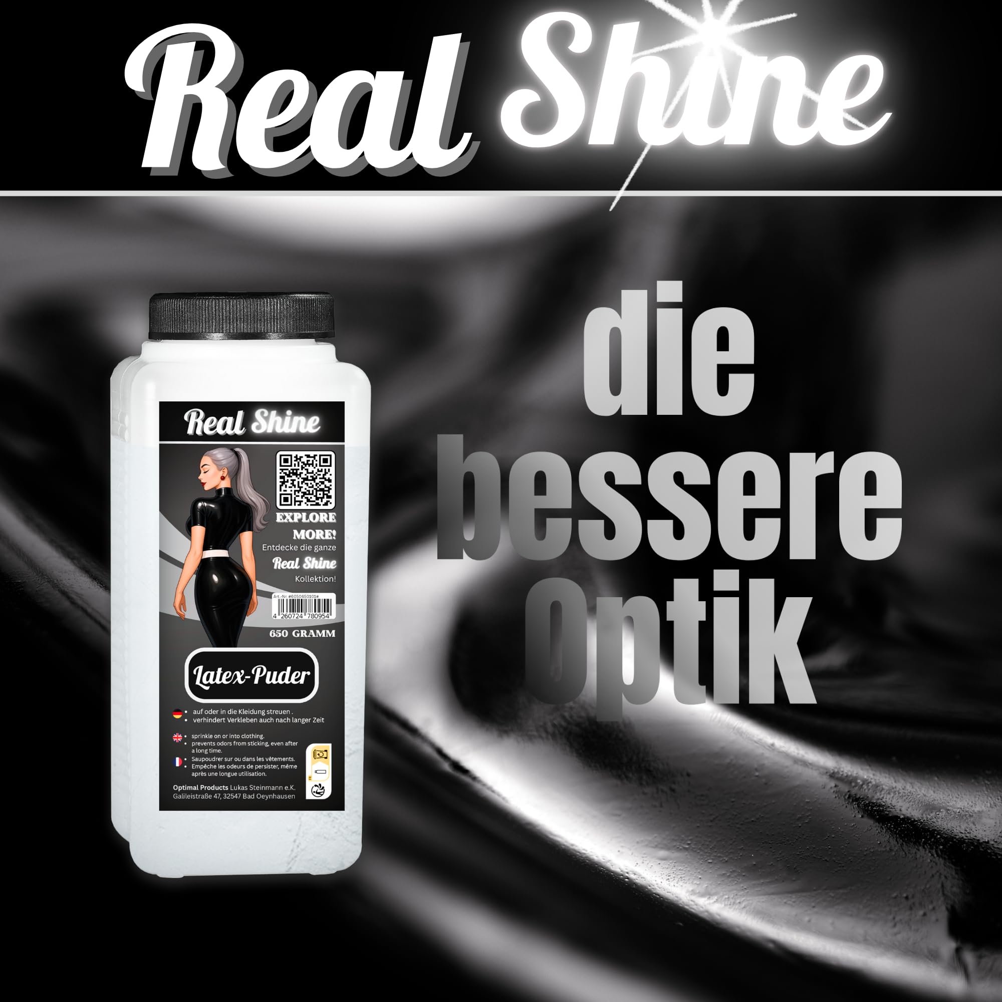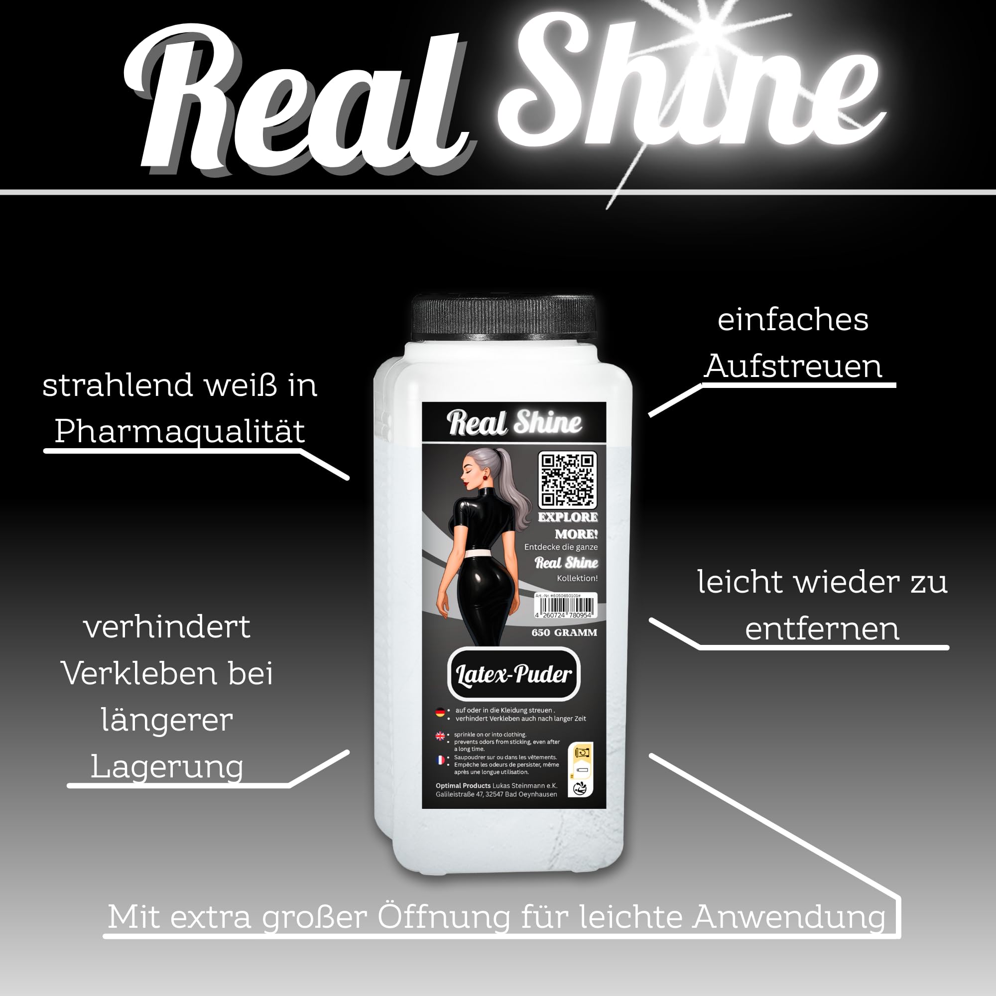 Optimal Products Latex Puder REALSHINE 650 g I weißes Talkum Puder geeignet als Anziehhilfe für Latex Kleidung, Latexhandschuhe sowie deren Einlagerung I geruchloses Pharma Qualität Talk antistatisch