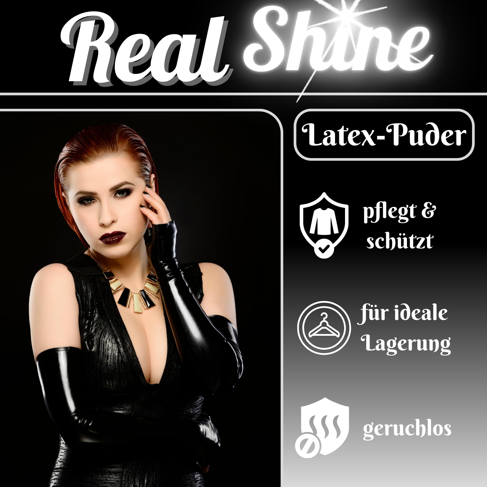 • LANGZEITSCHUTZ FÜR LATEX: Das feinste Latexpuder stäubt man leicht auf die Latexkleidung um das Verkleben der Ware auch nach längerem Nichtgebrauch zu verhindern