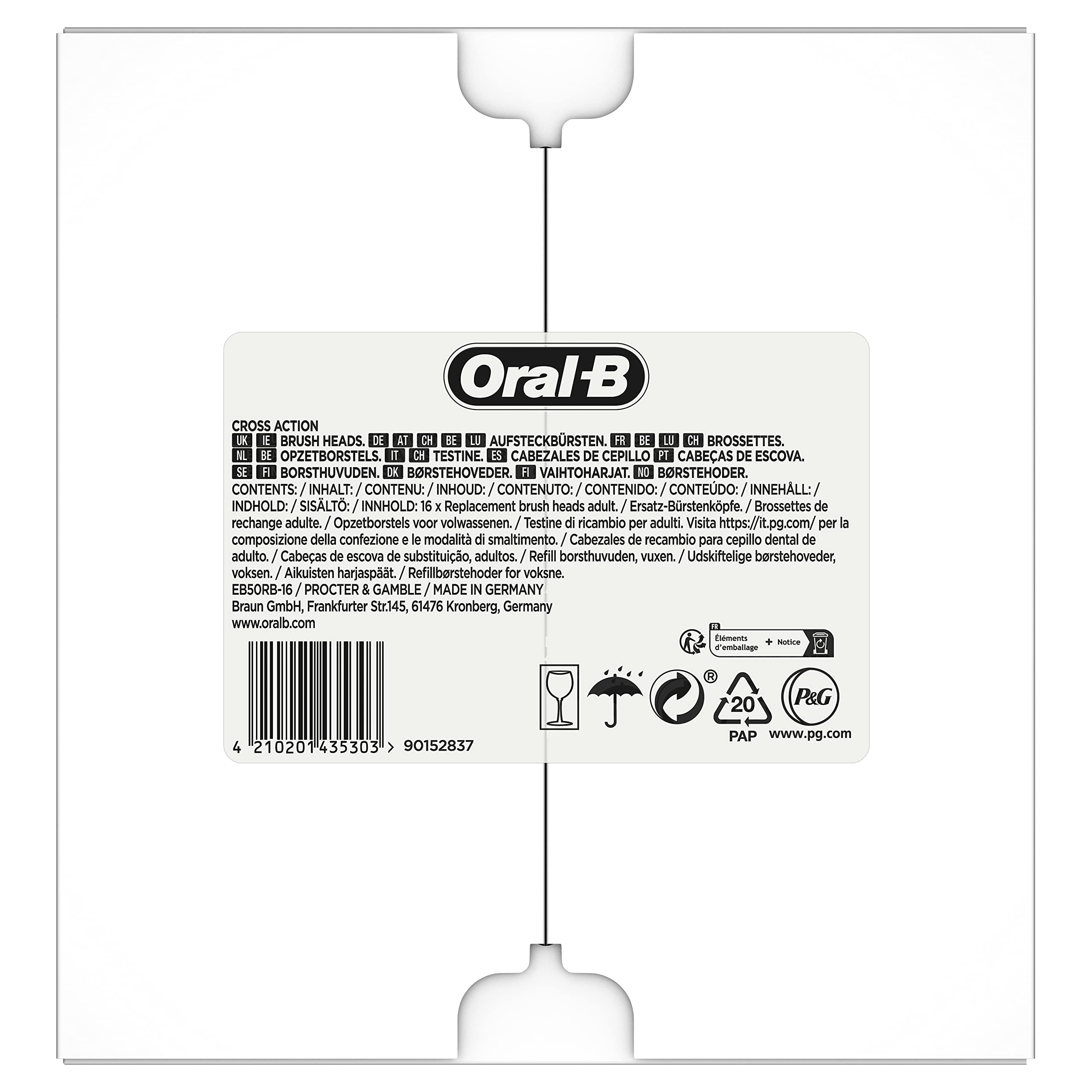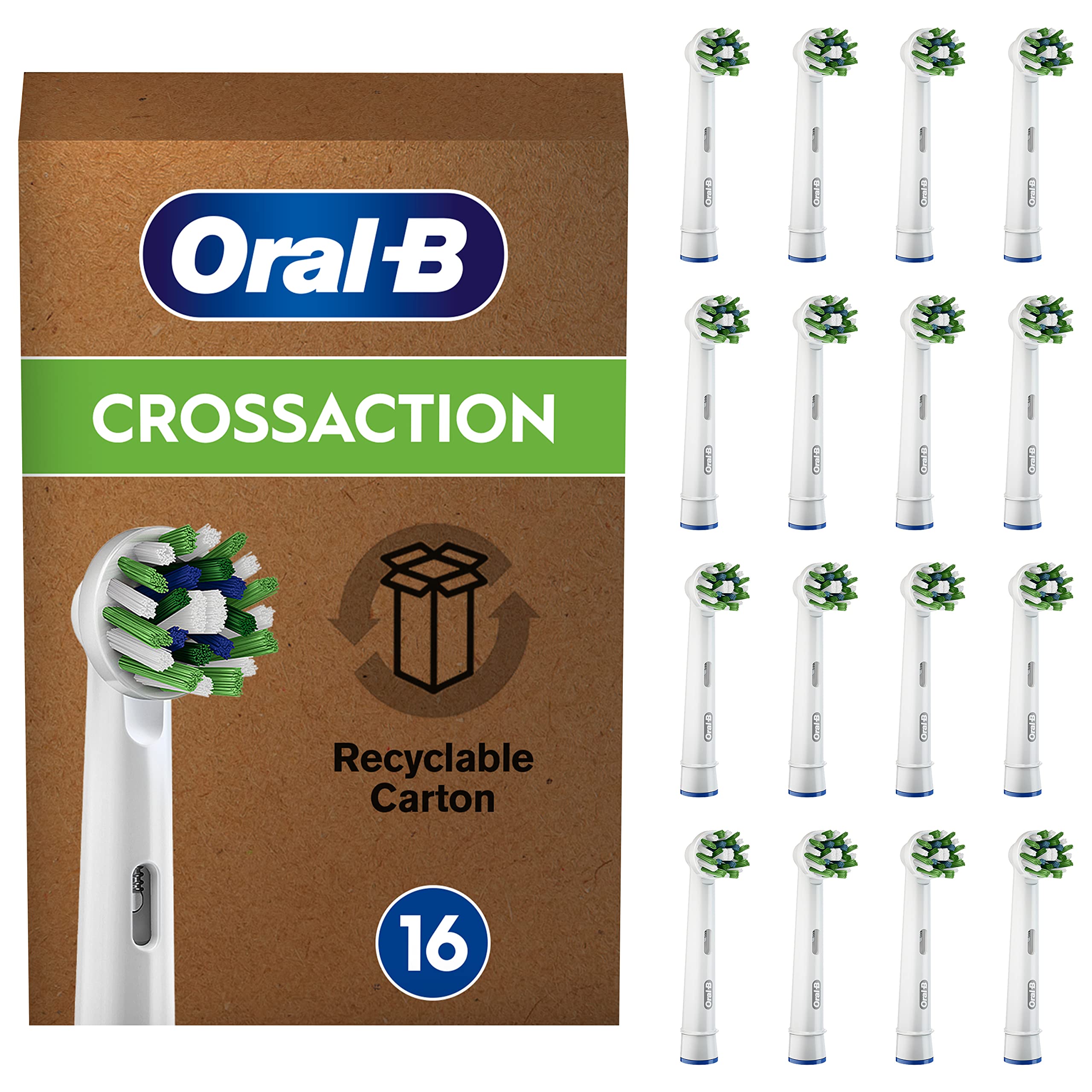 • Einfache Lieferung: 16 Oral-B Cross Action Aufsteckbürsten in briefkastenfähiger Verpackung