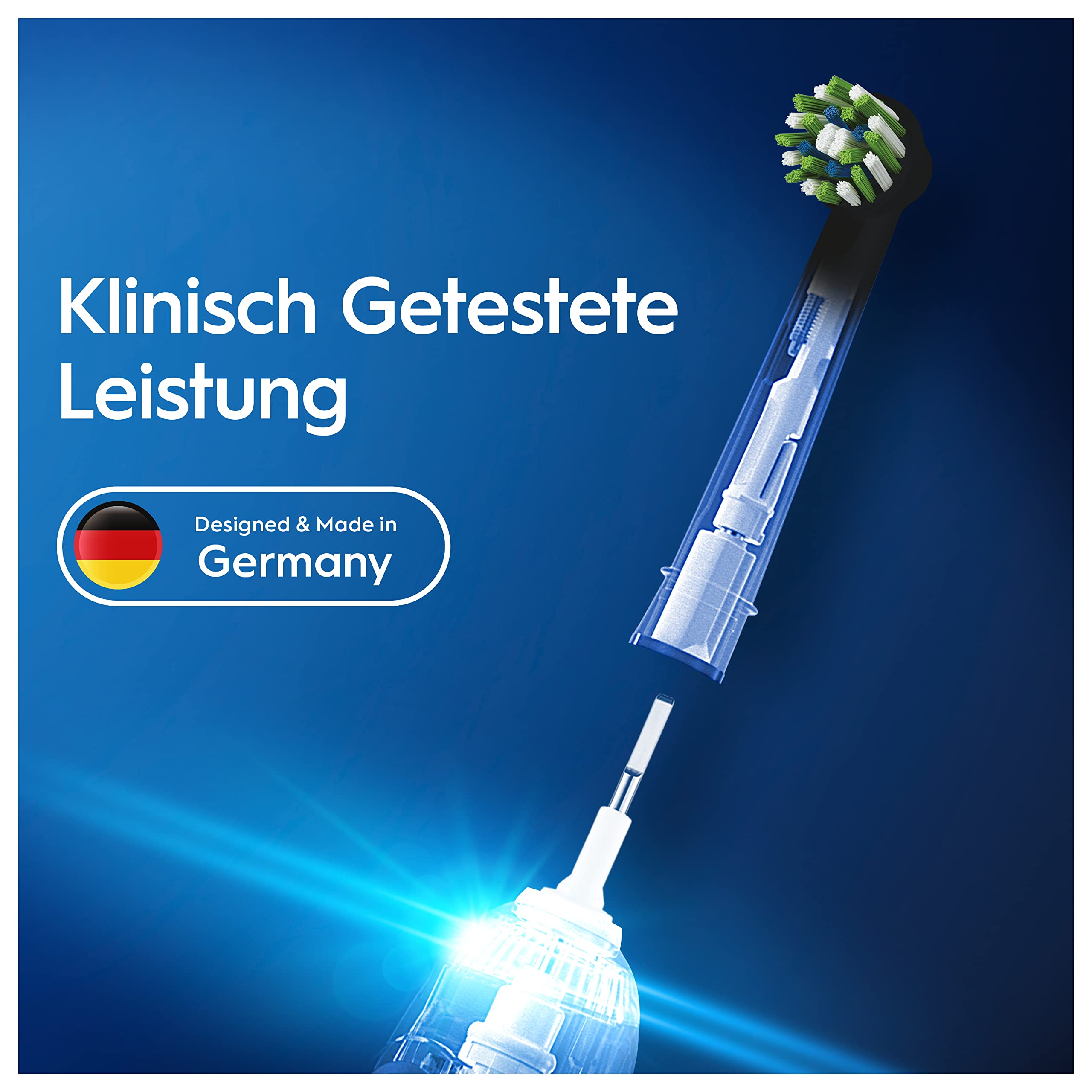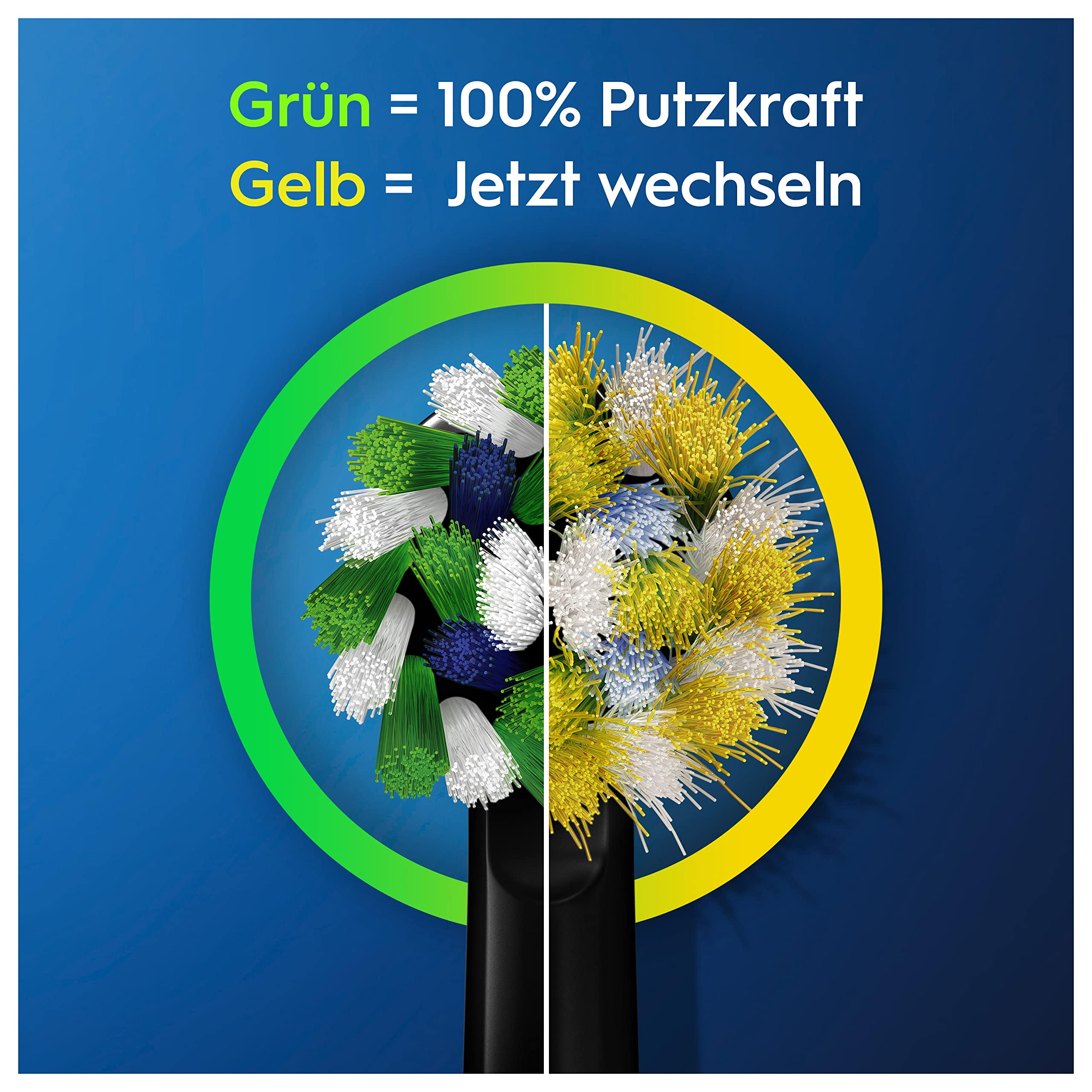 Der Oral-B CrossAction Bürstenkopf verfügt über perfekt angewinkelte Borsten, die bis zu 100% mehr Plaque entfernen als eine Handzahnbürste. Die innovative CleanMaximiser-Technologie färbt grüne Borsten gelb und signalisiert so den optimalen Zeitpunkt zum Wechseln für die beste Reinigung. 100% Pass-Garantie für alle Oral-B elektrische Zahnbürsten, ausser Pulsonic & iO. Designed & made in Germany.