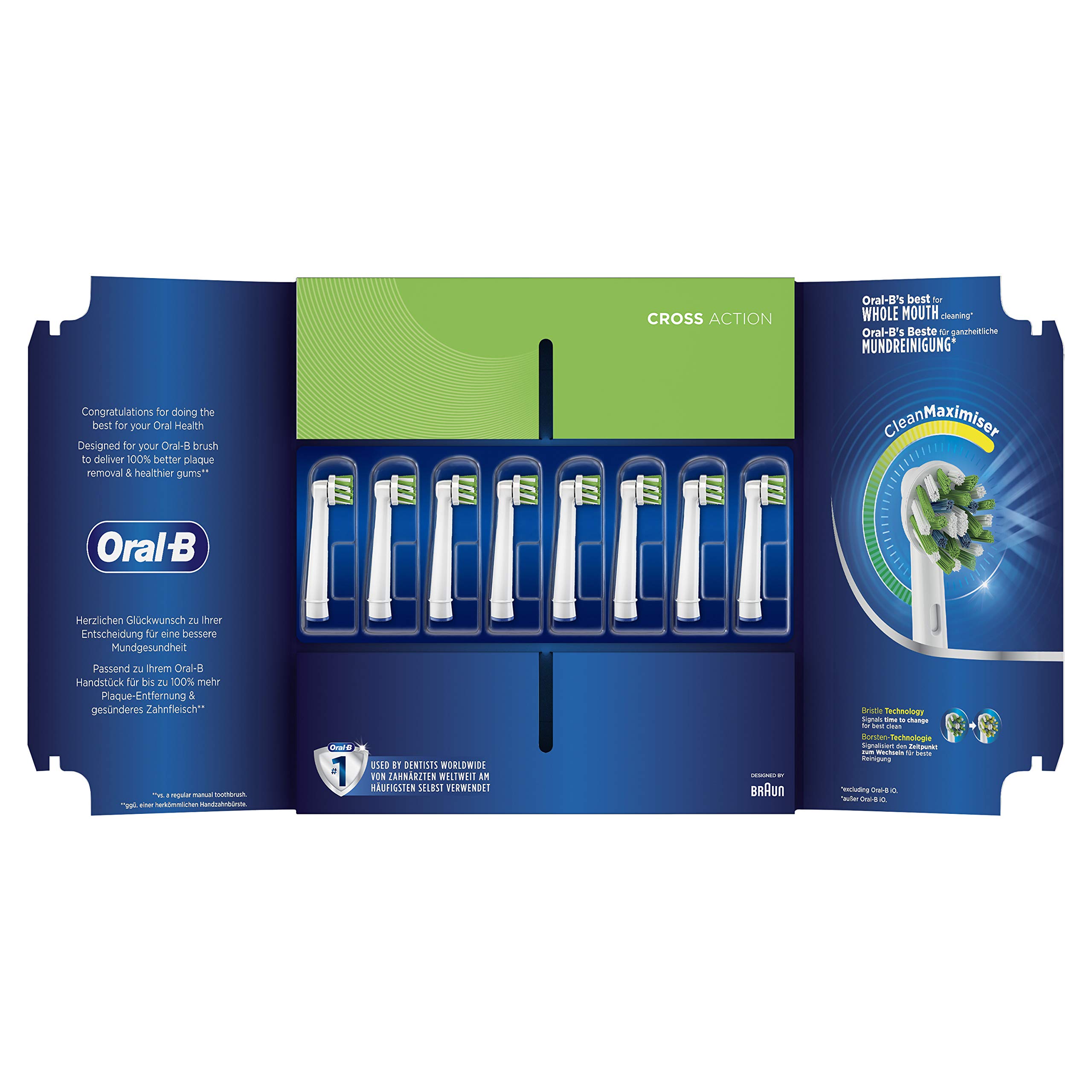 Oral-B CrossAction Aufsteckbürsten mit CleanMaximiser-Borsten in briefkastenfähiger Verpackung, 8 Stück