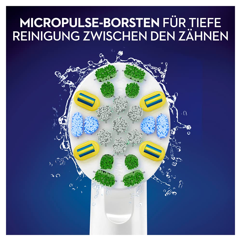 Der Oral-B Tiefenreinigung Bürstenkopf sorgt mit den speziellen MicroPulse-Borsten für eine tiefe Reinigung zwischen den Zähnen. Er hilft Zahnfleischentzündungen zu reduzieren und entfernt bis zu 100% mehr Plaque als eine Handzahnbürste. Die innovative CleanMaximiser-Technologie färbt grüne Borsten gelb und signalisiert so den optimalen Zeitpunkt zum Wechseln für die beste Reinigung. 100% Pass-Garantie für alle Oral-B Braun elektrische Zahnbürsten, ausser Pulsonic & iO. Designed & made in Germany.