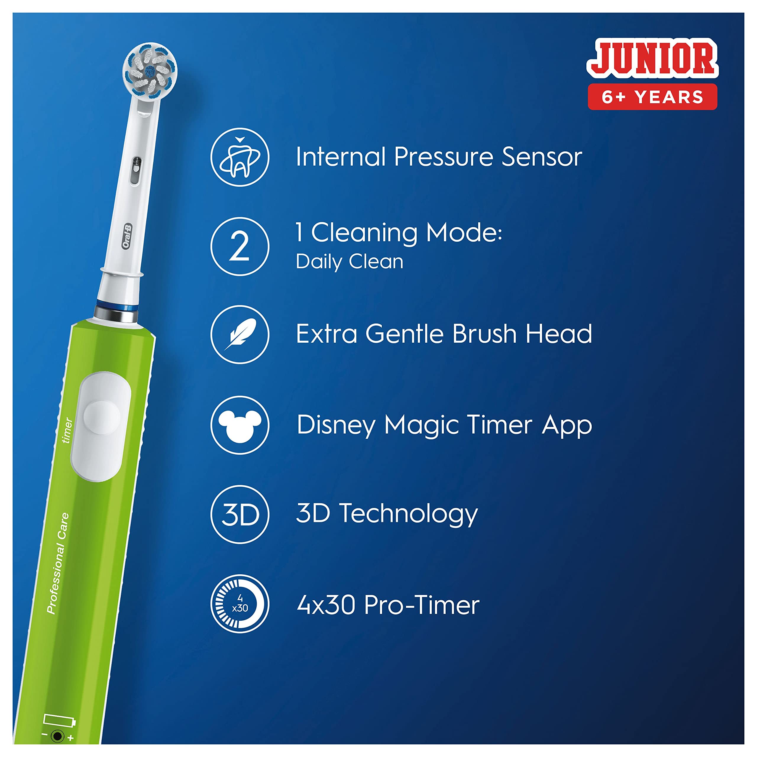 Oral-B Elektrische Kinderzahnbürste, Geschenke für Kinder, 1 Zahnbürstenkopf, mit kinderfreundlichem Sensitivmodus, für Kinder ab 6 Jahren, 2-poliger UK-Stecker, Grün