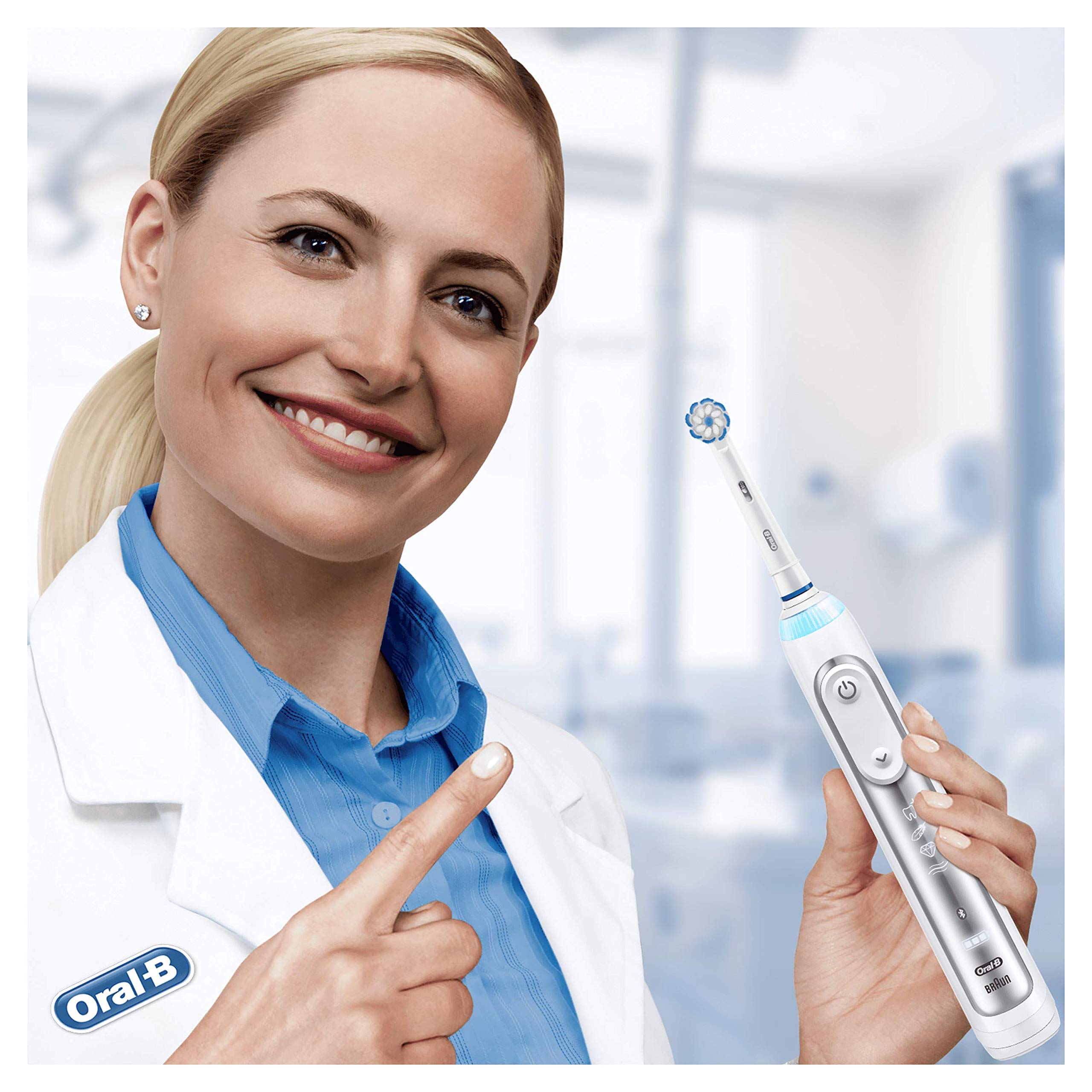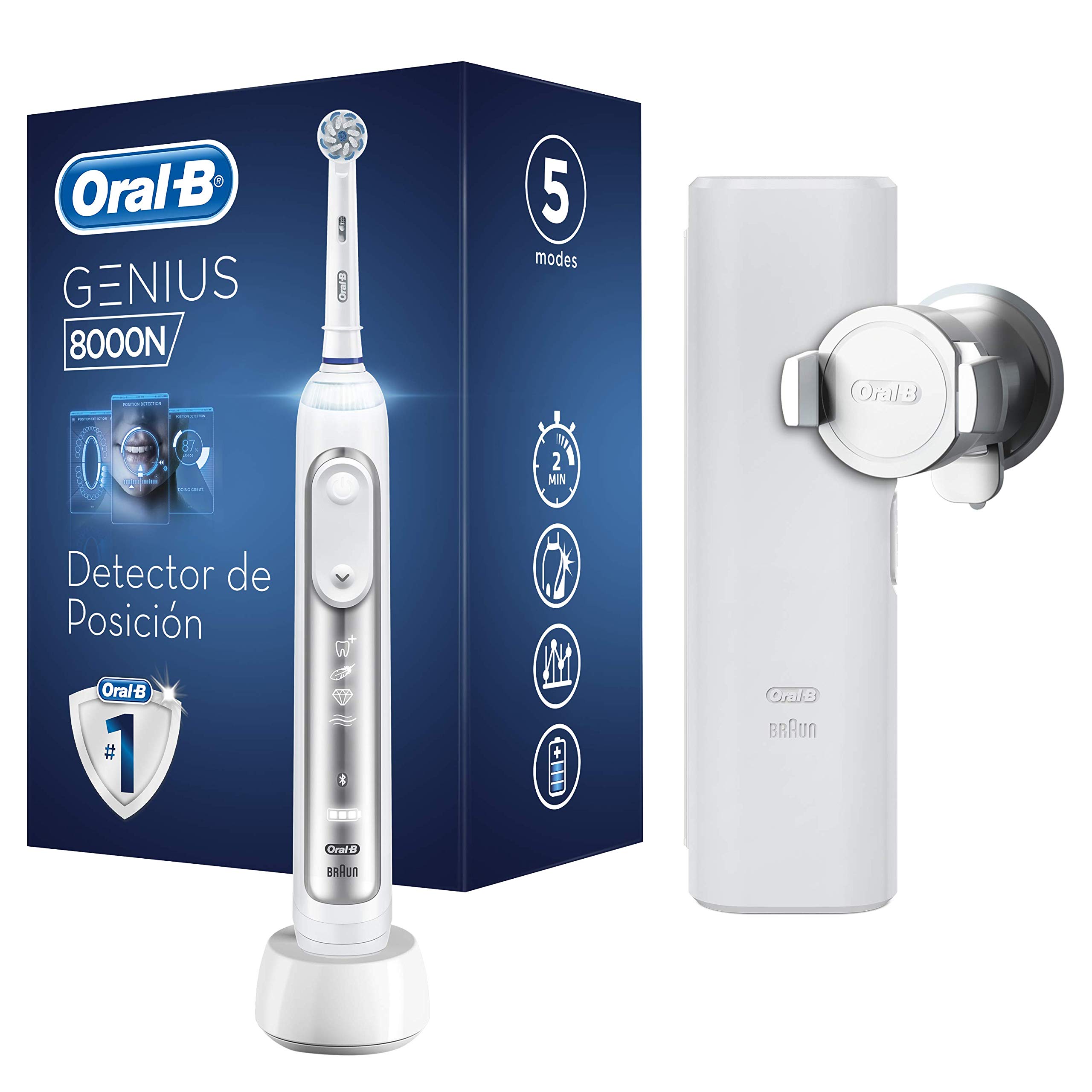 Oral-B Genius 8000N Elektrische Zahnbürste/Electric Toothbrush mit Positionserkennung & Smart-Coaching App, 5 Putzprogramme, Smartphone-Halterung & Reiseetui, silber