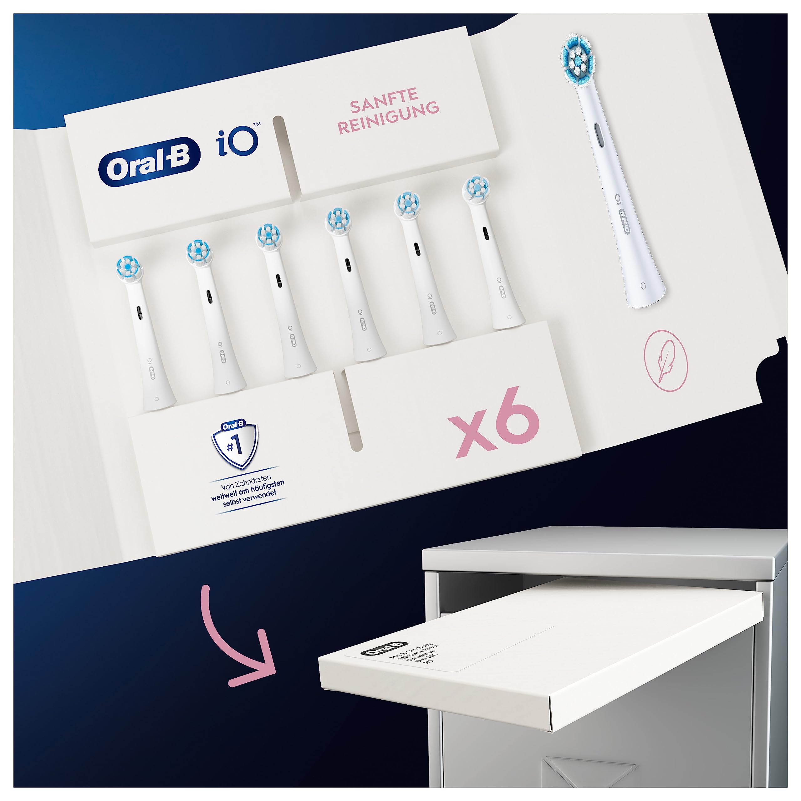 Oral-B iO Sanfte Reinigung Aufsteckbürsten für elektrische Zahnbürste, 6 Stück, sanfte Zahnreinigung, Zahnbürstenaufsatz für Oral-B iO Zahnbürsten, briefkastenfähige Verpackung