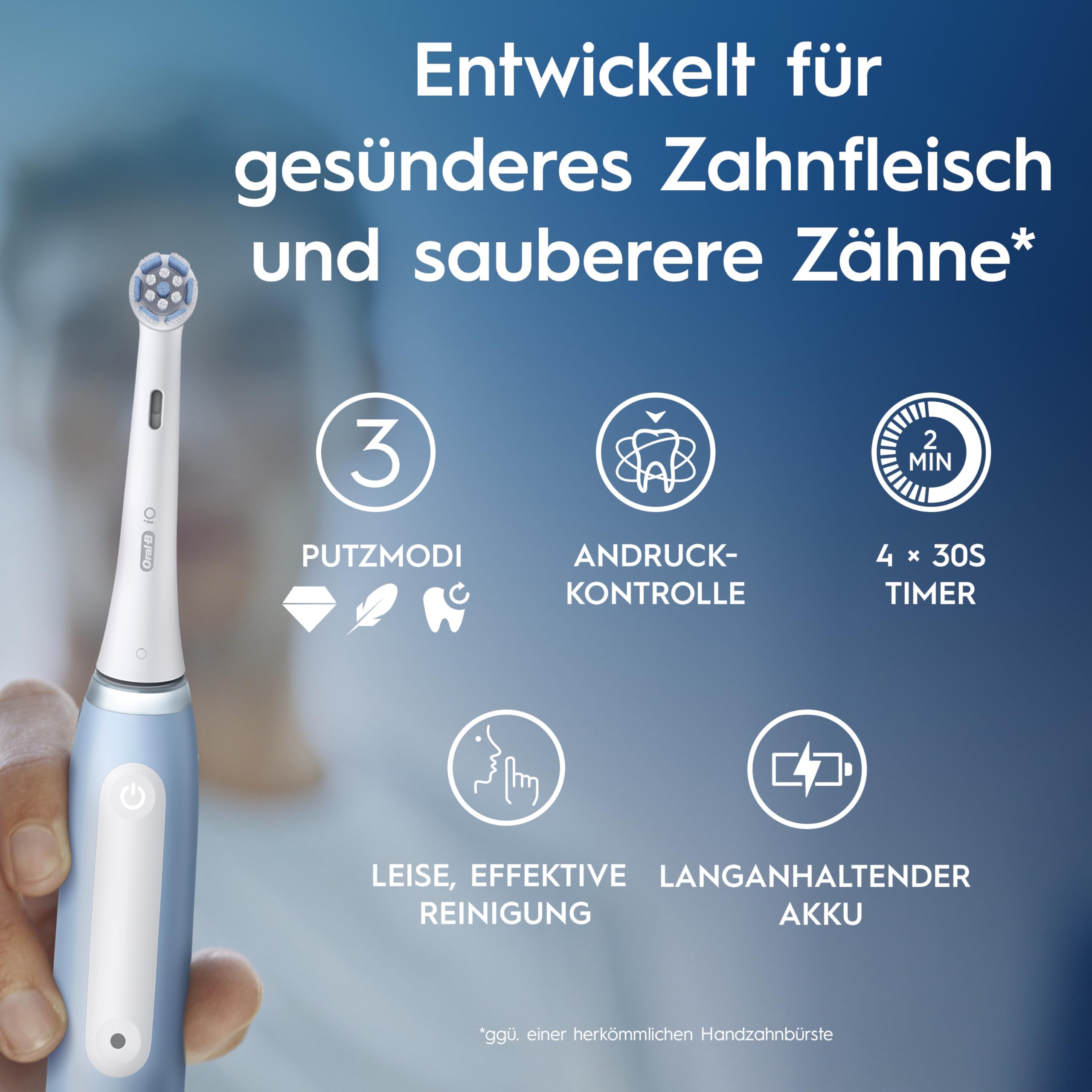 Oral-B iO Series 3 Plus Edition Elektrische Zahnbürste — Electric Toothbrush, Inkl. 3 Aufsteckbürsten, 3 Putzmodi für Zahnpflege — Designed by Braun, GUT GETESTET von STIFTUNG WARENTEST, Hellblau, Konfiguration: 1 Bürste + 3 Köpfe, Farbe: Hellblau