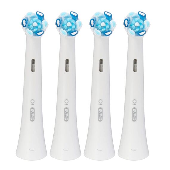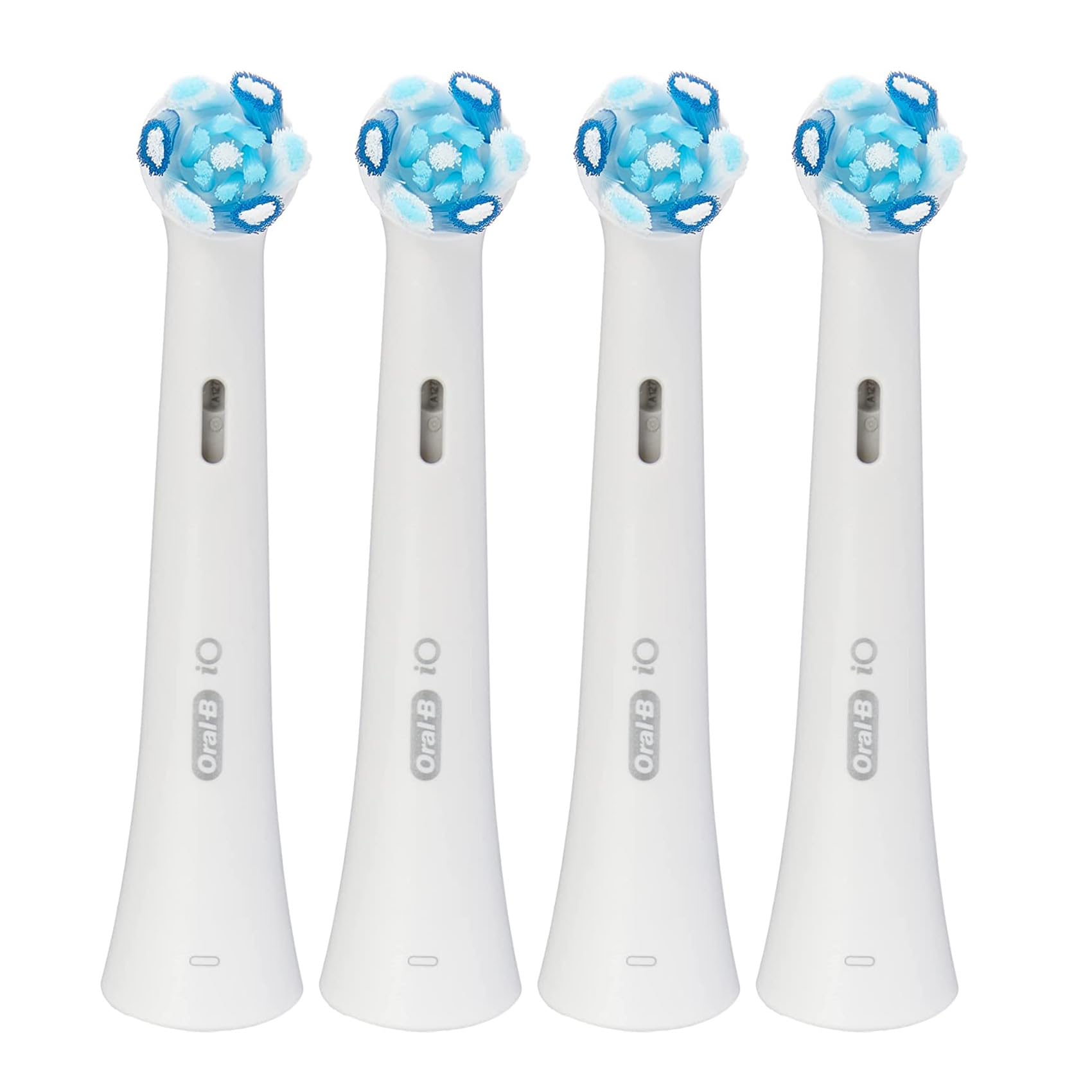 Oral-B iO Ultimate Clean Aufsteckbürste für elektrische Zahnbürste, verdrehte & abgewinkelte Borsten für tiefere Plaque-Entfernung, 4 Stück Zahnbürstenköpfe, Weiss