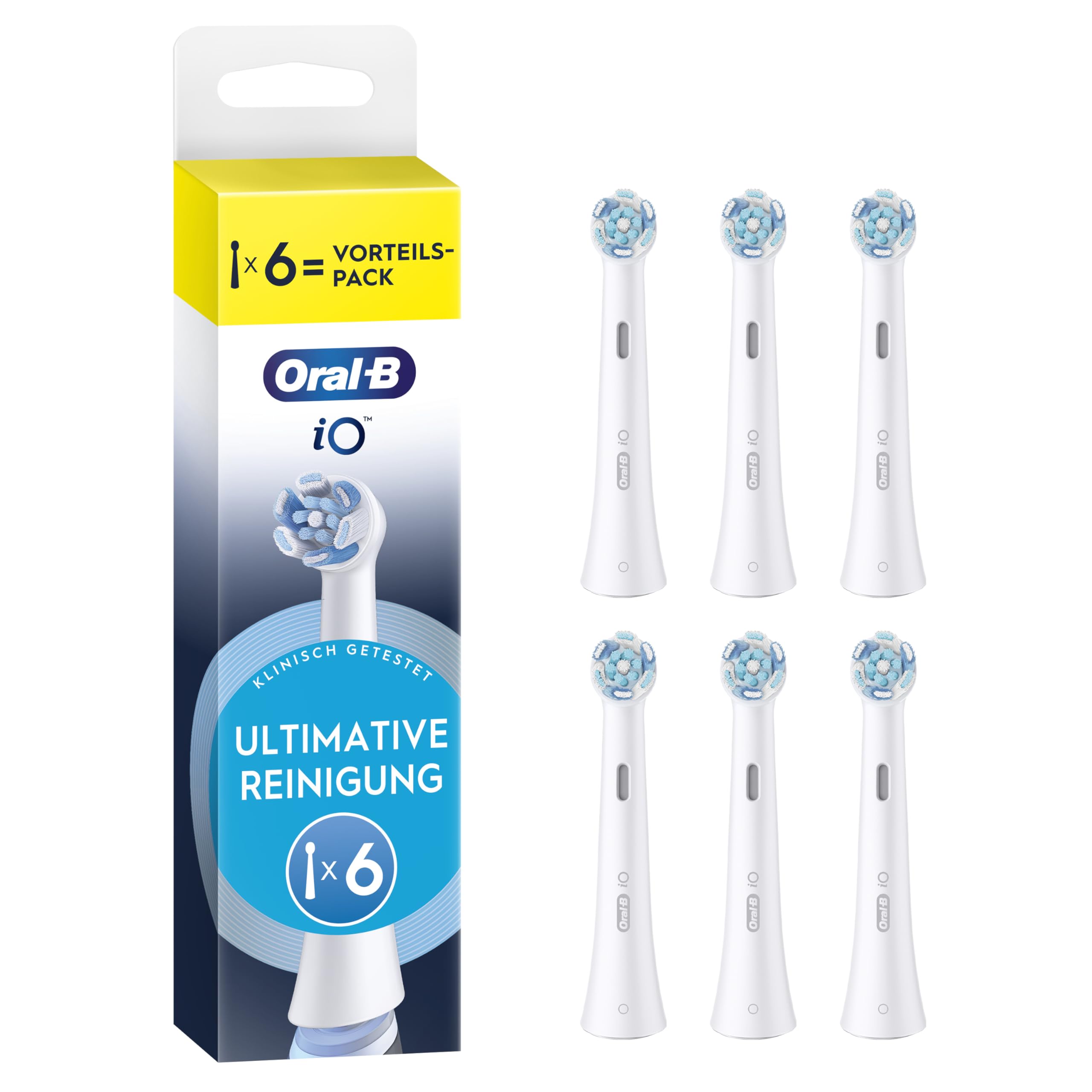 Oral-B iO Ultimative Reinigung, Original Aufsteckbürsten für elektrische Oral-B iO Zahnbürsten, 'Borsten-in-Borsten' Bündel, Weiss, 6 Stück