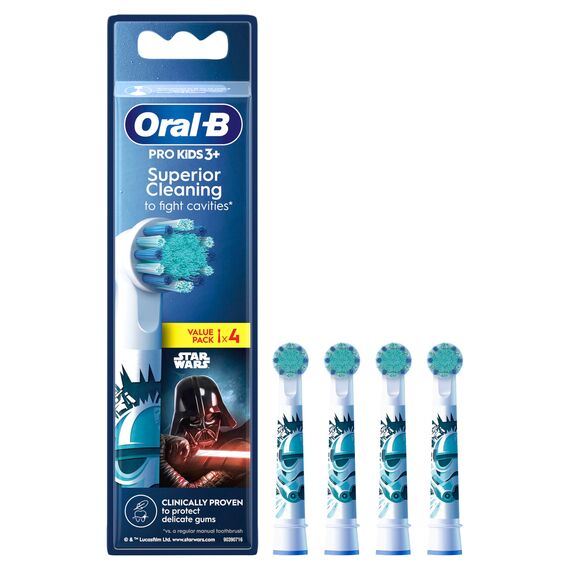Oral-B Pro Kids Aufsteckbürsten für elektrische Zahnbürsten, Disney Star Wars, 4 Stück, entworfen für ein sanftes Bürsten