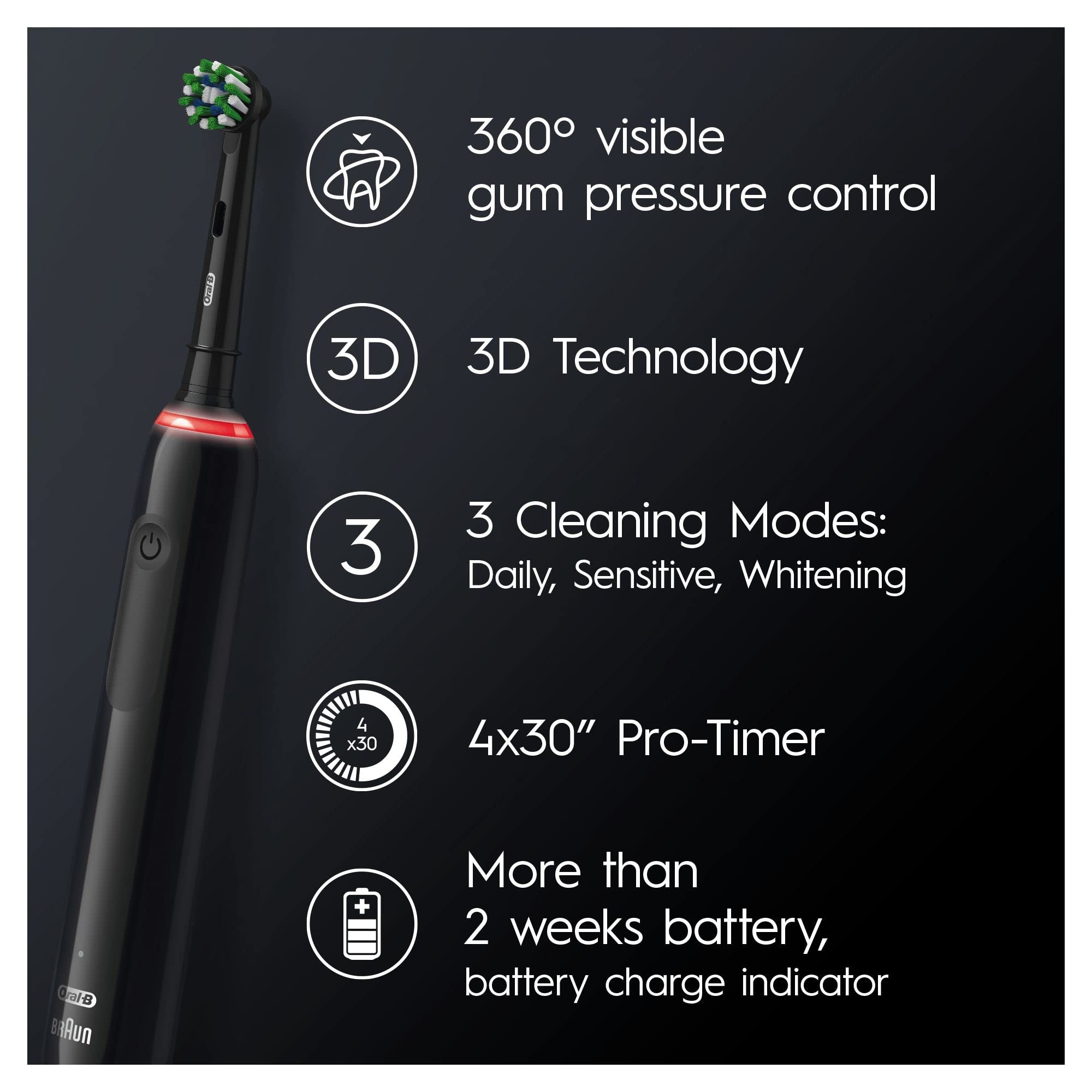 Oral-B Pro 3 2 x elektrische Zahnbürsten für Erwachsene, 2 Griffe & 2 Cross-Action-Zahnbürstenköpfe, 3 Modi mit Zahnaufhellung, 2-poliger UK-Stecker, 3900, Schwarz
