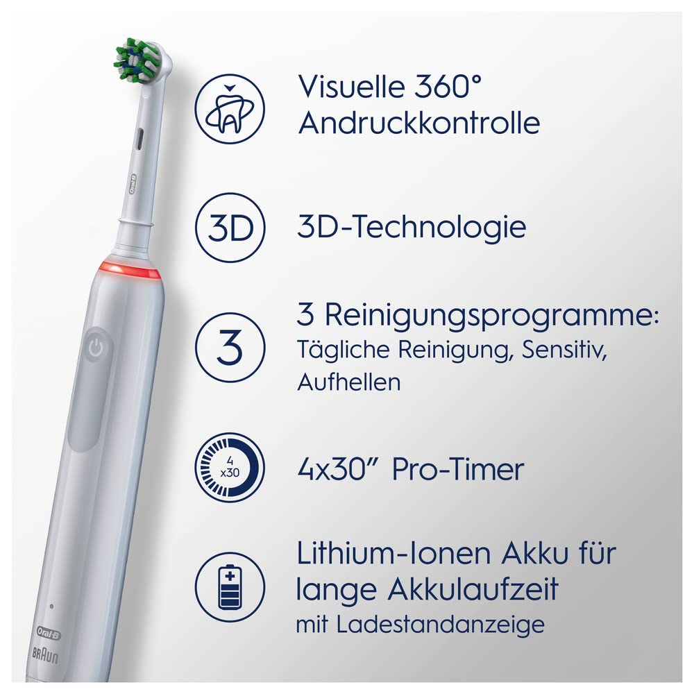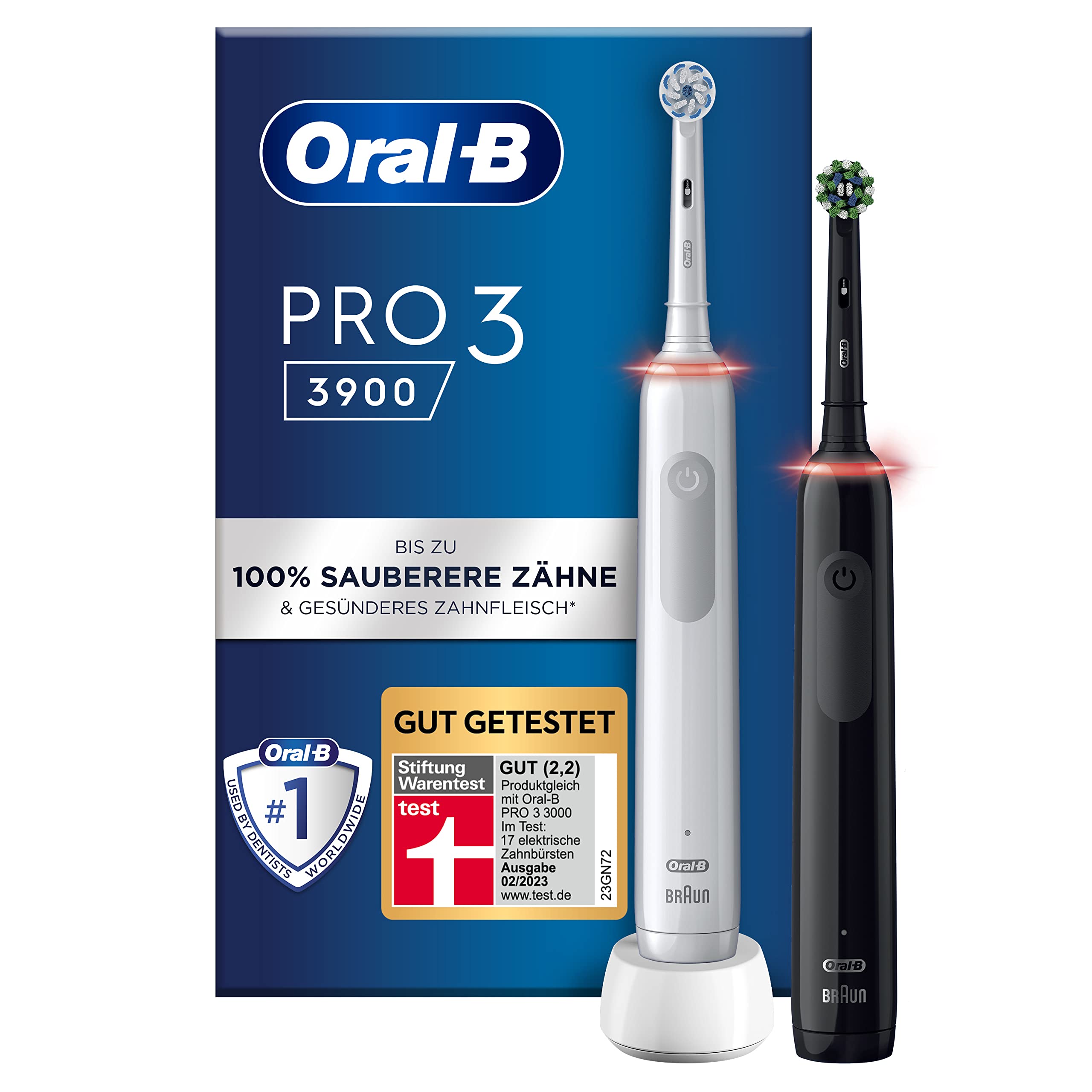 Oral-B PRO 3 3900 Elektrische Zahnbürste/Electric Toothbrush, Doppelpack, mit 3 Putzmodi und visueller 360° Andruckkontrolle für Zahnpflege, Geschenk Mann/Frau, Designed by Braun, weiss/schwarz