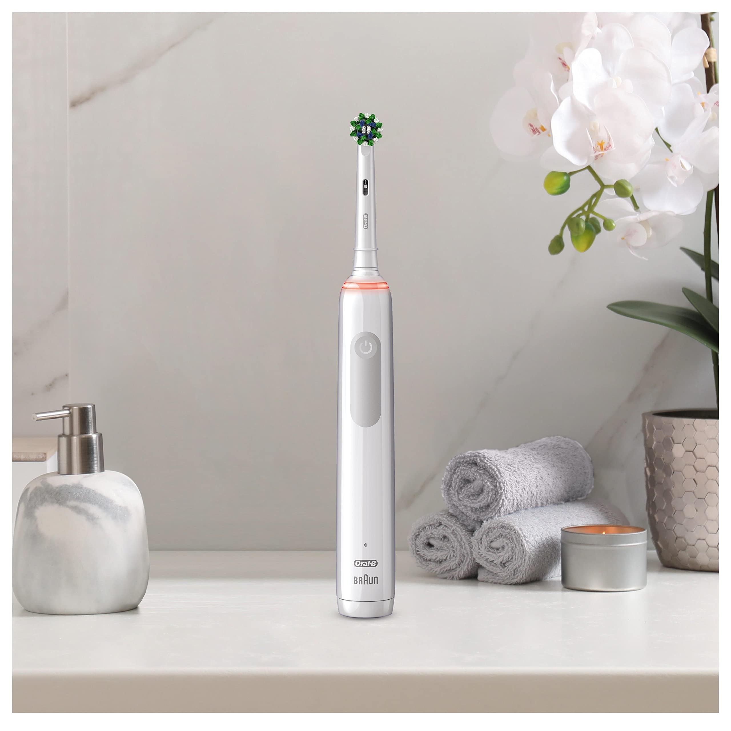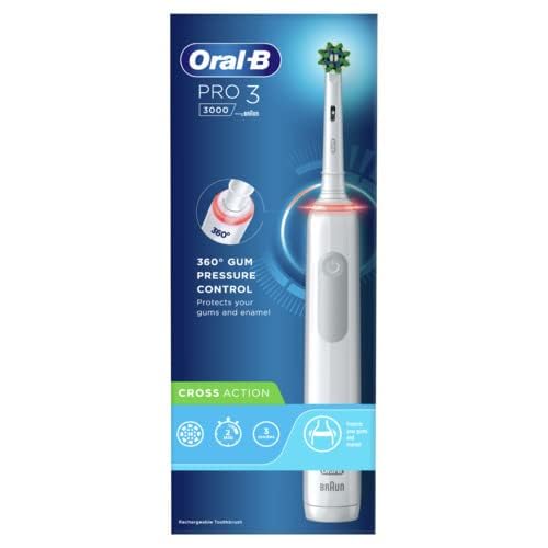 Oral-B Pro 3 Elektrische Zahnbürste für Erwachsene, 1 Cross-Action-Zahnbürstenkopf, 3 Modi, Oral B Elektrische Zahnbürste mit Drucksensor, 2-poliger UK-Stecker, 3000, Weiss