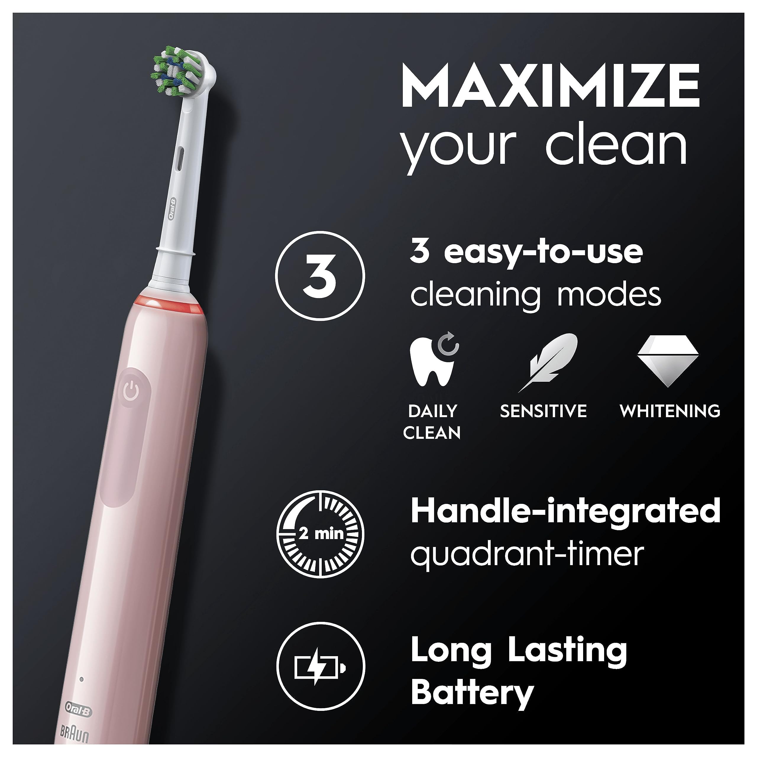 Oral-B Pro 3 Elektrische Zahnbürsten Erwachsene, Weihnachtsgeschenke für Frauen/Ihn, 1 Zahnbürstenkopf & Reiseetui, 3 Modi mit Zahnaufhellung, 2-poliger EU-Stecker, Pin