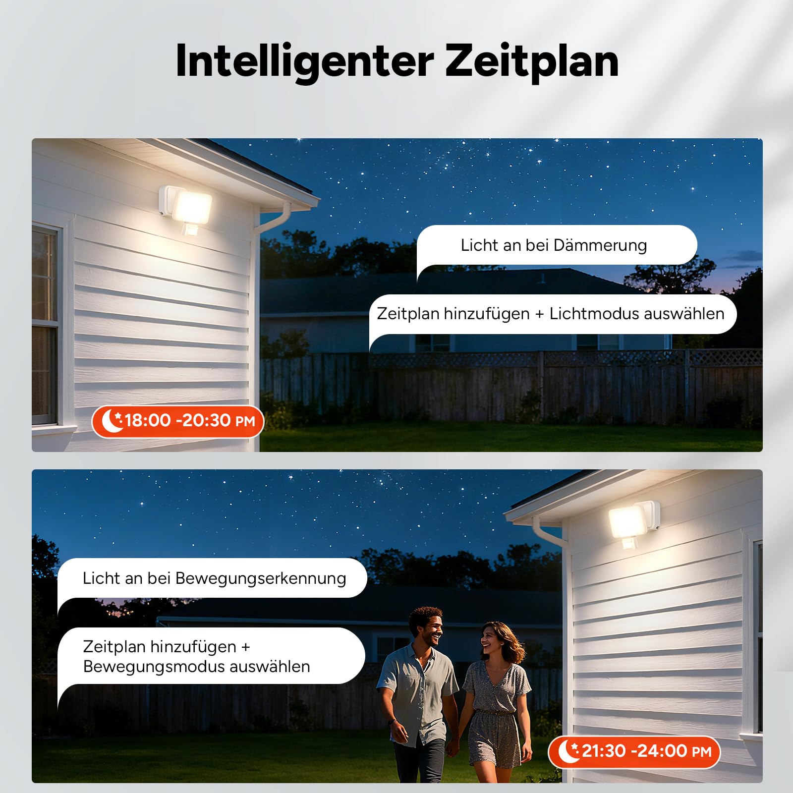 OREiN Smart Aussenstrahler mit Bewegungsmelder 28W/3000lm, App steuerbar, Vielseitige Aussenlampe 2700/4000/6500K, Gruppensteuerung & Timer, IP65 Intelligente Aussenleuchte für Haustür/ Garage, Weiss